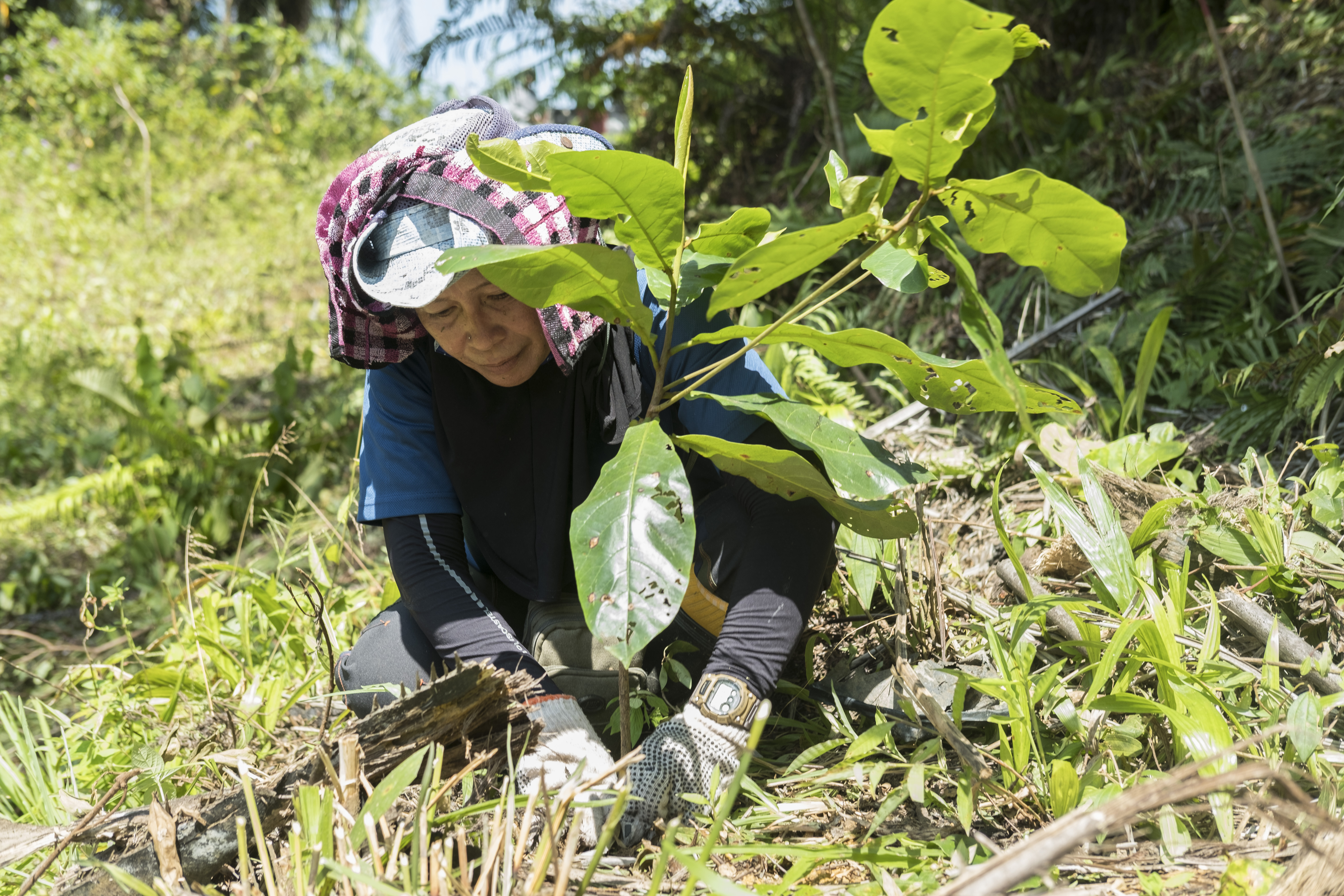 Their main target is not about planting high numbers of trees, but ensuring the saplings’ survival in an environment where young trees are at risk of being smothered by tall grasses, bushes, ferns and vines.