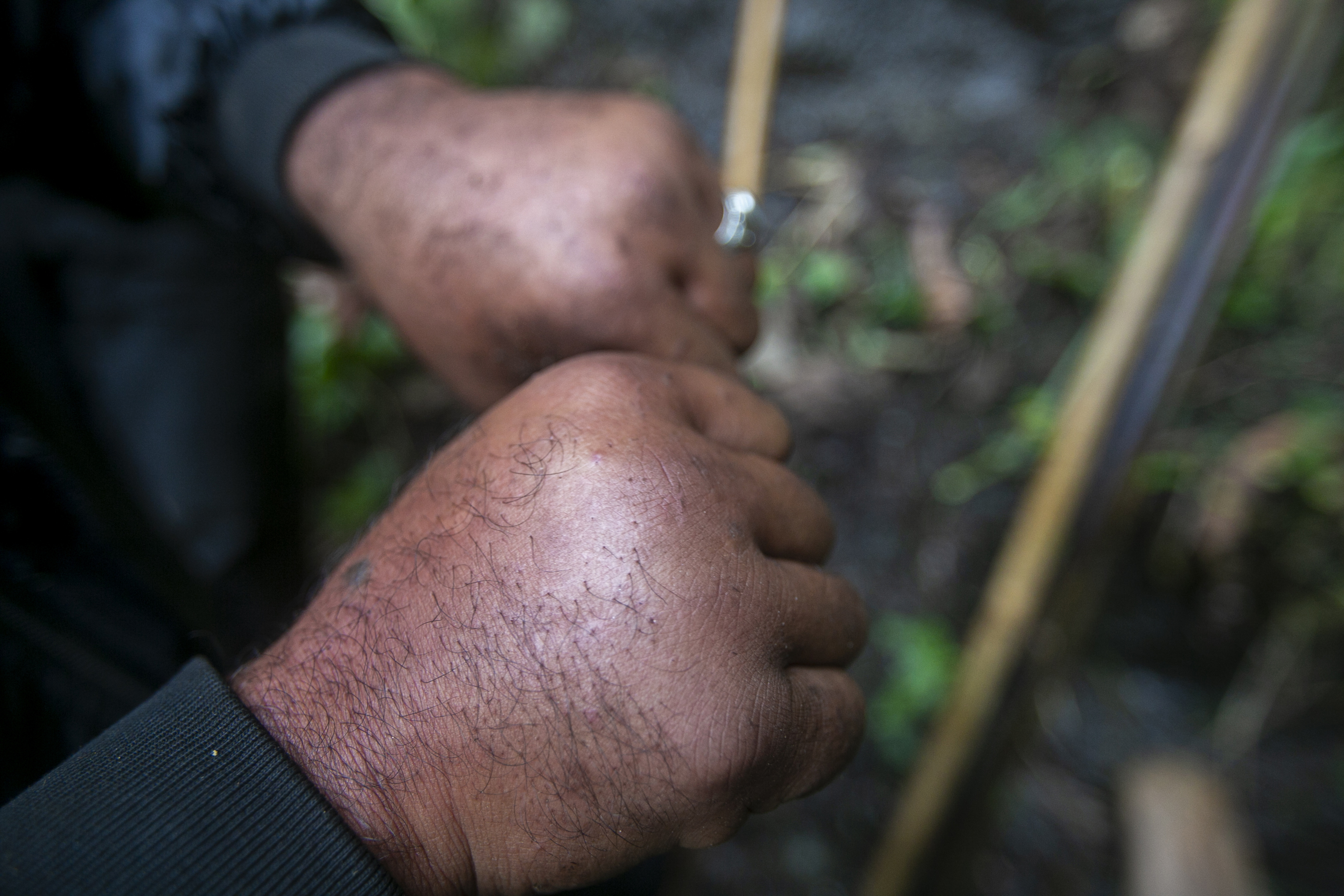 Nepali’s hands were swollen badly. He was stung on his hands, feet and elsewhere on his body. He drinks the alcoholic beverage, he said, to make the pain bearable.