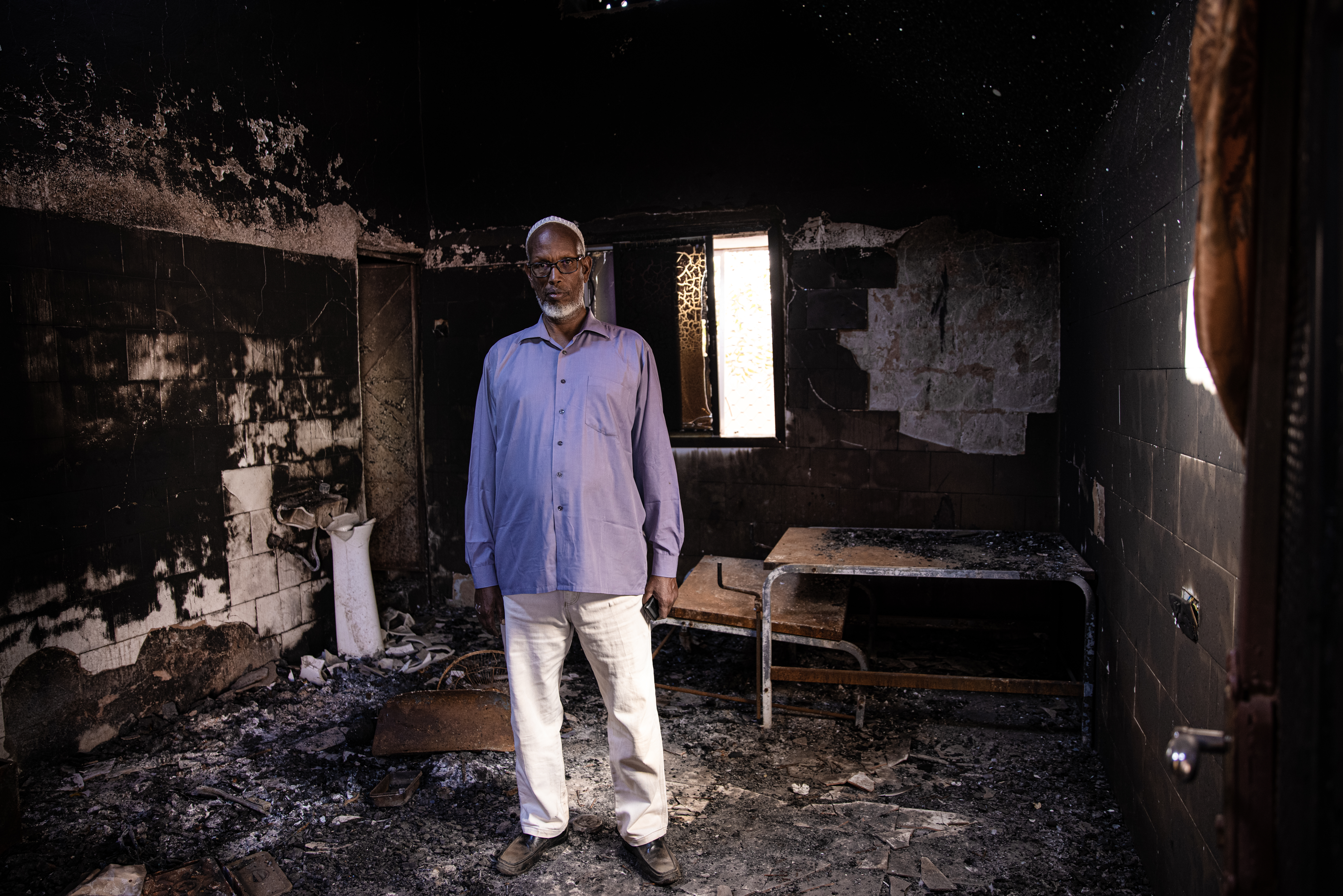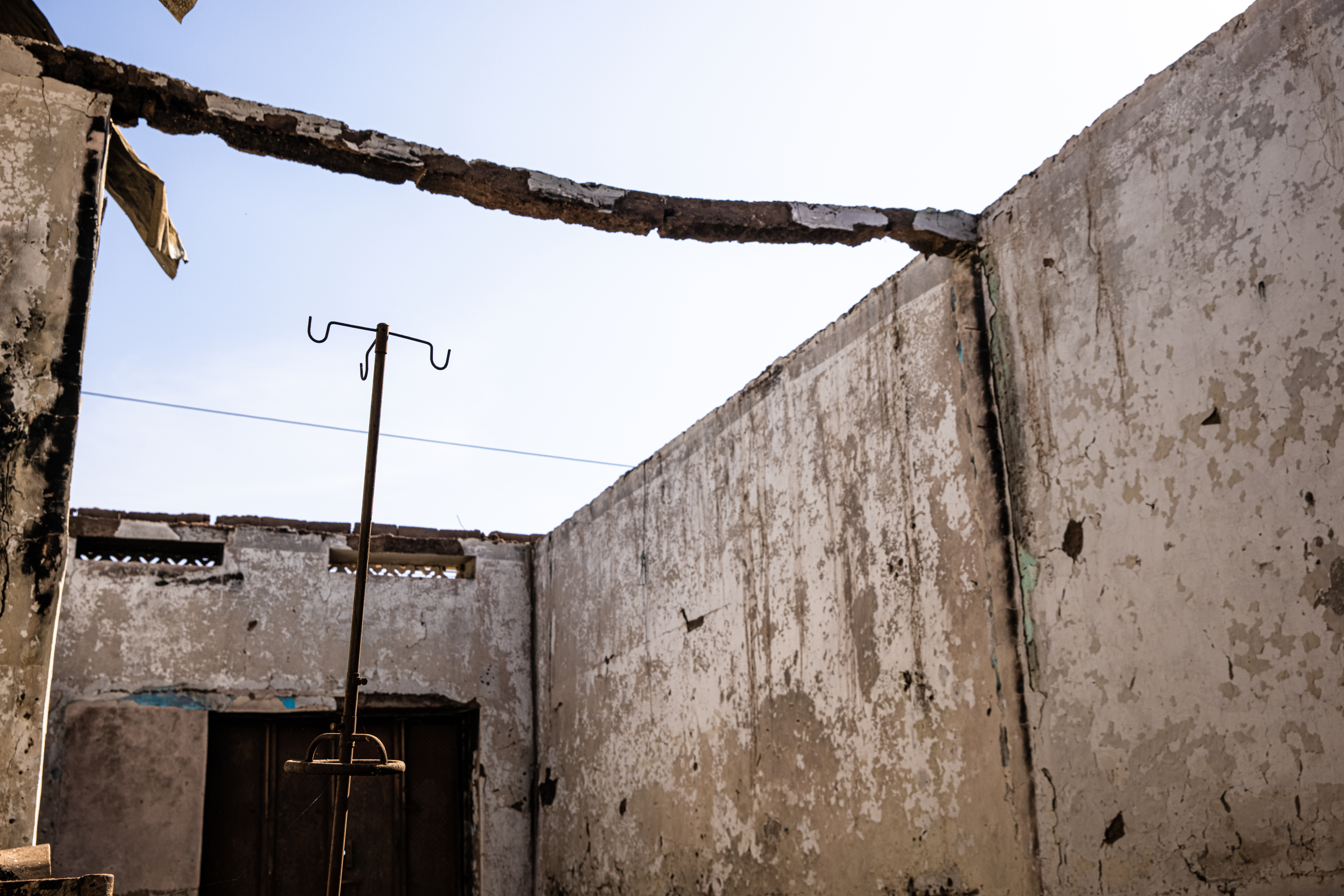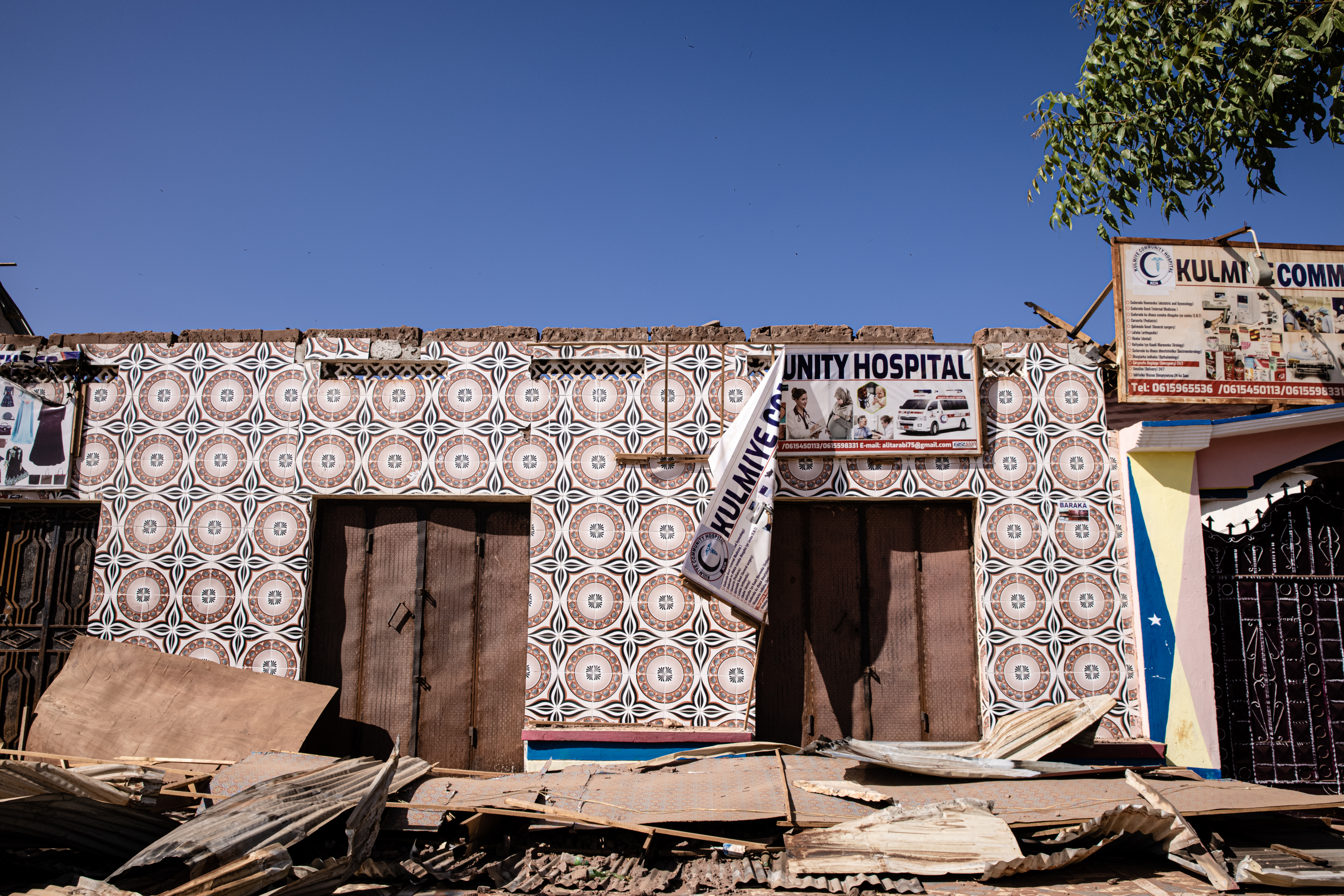 Intense shelling damaged several buildings, including Guriel’s main hospital, Istarlin. The Kulmiye Community hospital, the second-largest in the town, was destroyed in a fire. Its medical wards now stand empty and roofless, with charred walls and heaps of corrugated metal lying on the floor.