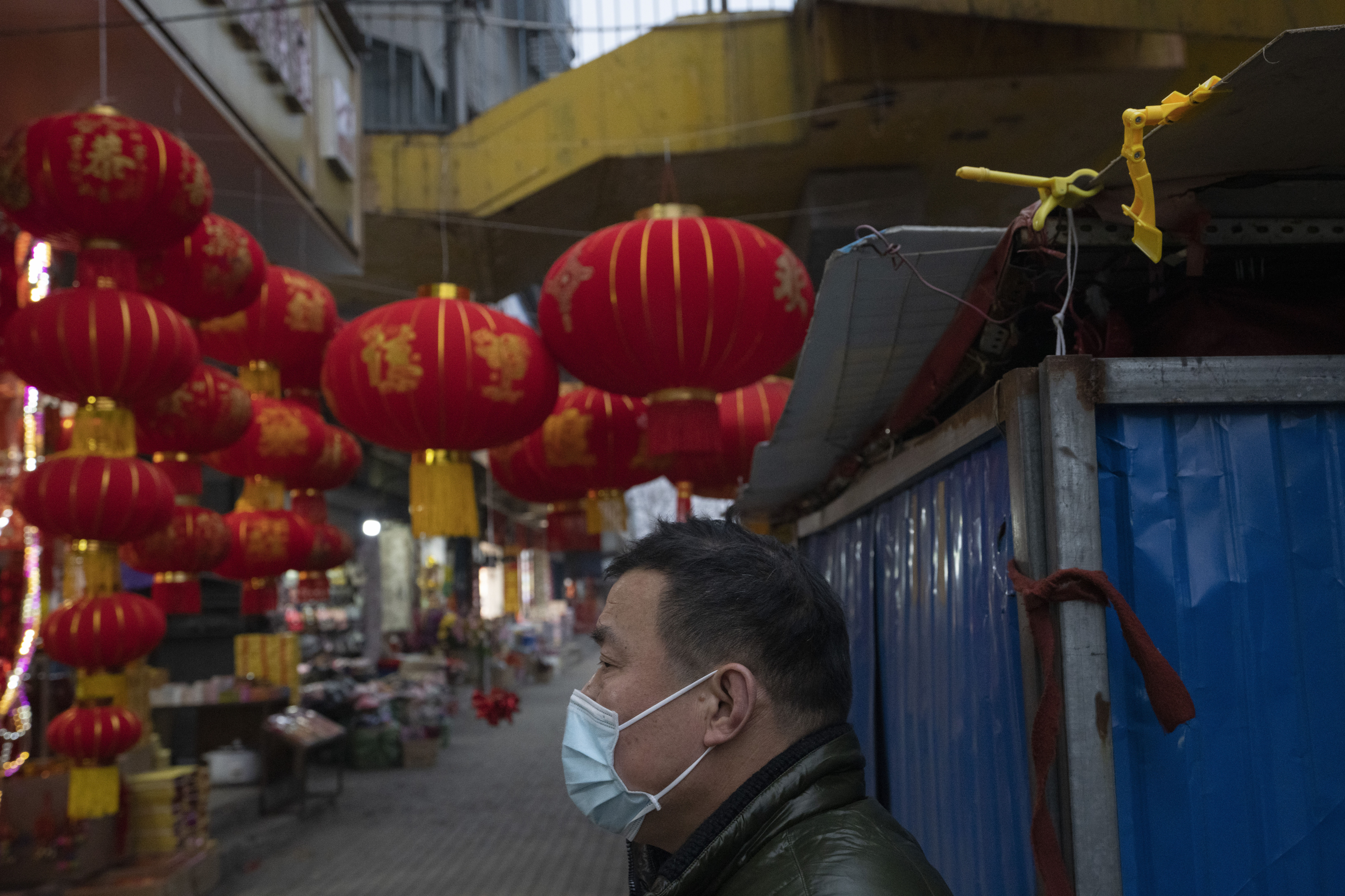 Vibrant red lanterns line an alley in Wuhan, China, expectant decorations for a holiday that traditionally sees these alleyways thronged with revellers. But customers only trickle in.