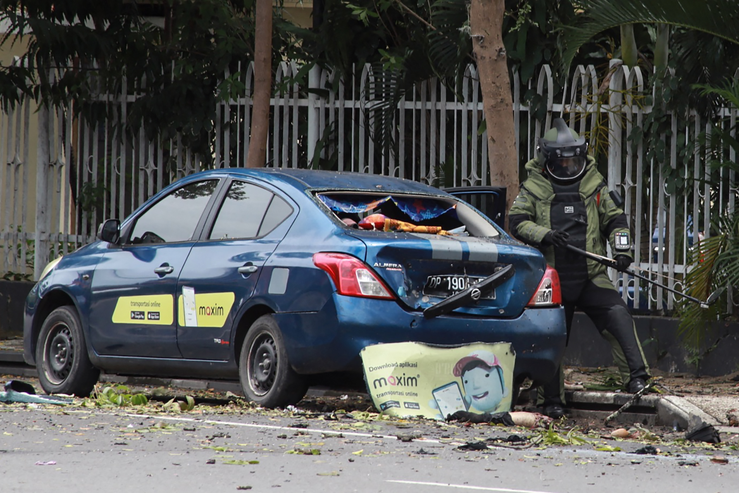 “There were two people riding on a motorbike when the explosion happened at the main gate of the church. The perpetrators were trying to enter the compound,” National Police spokesman Argo Yuwono said on Sunday.