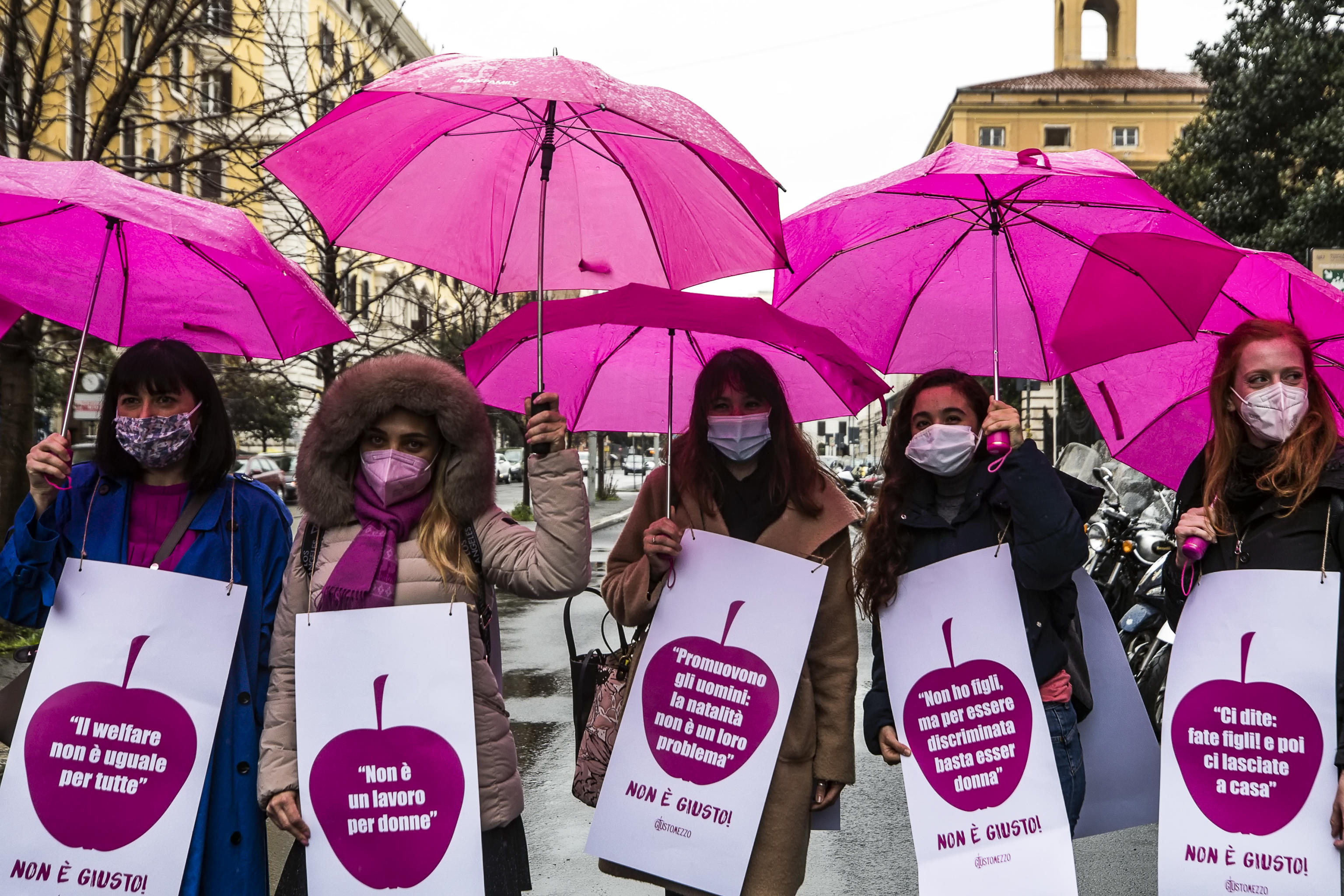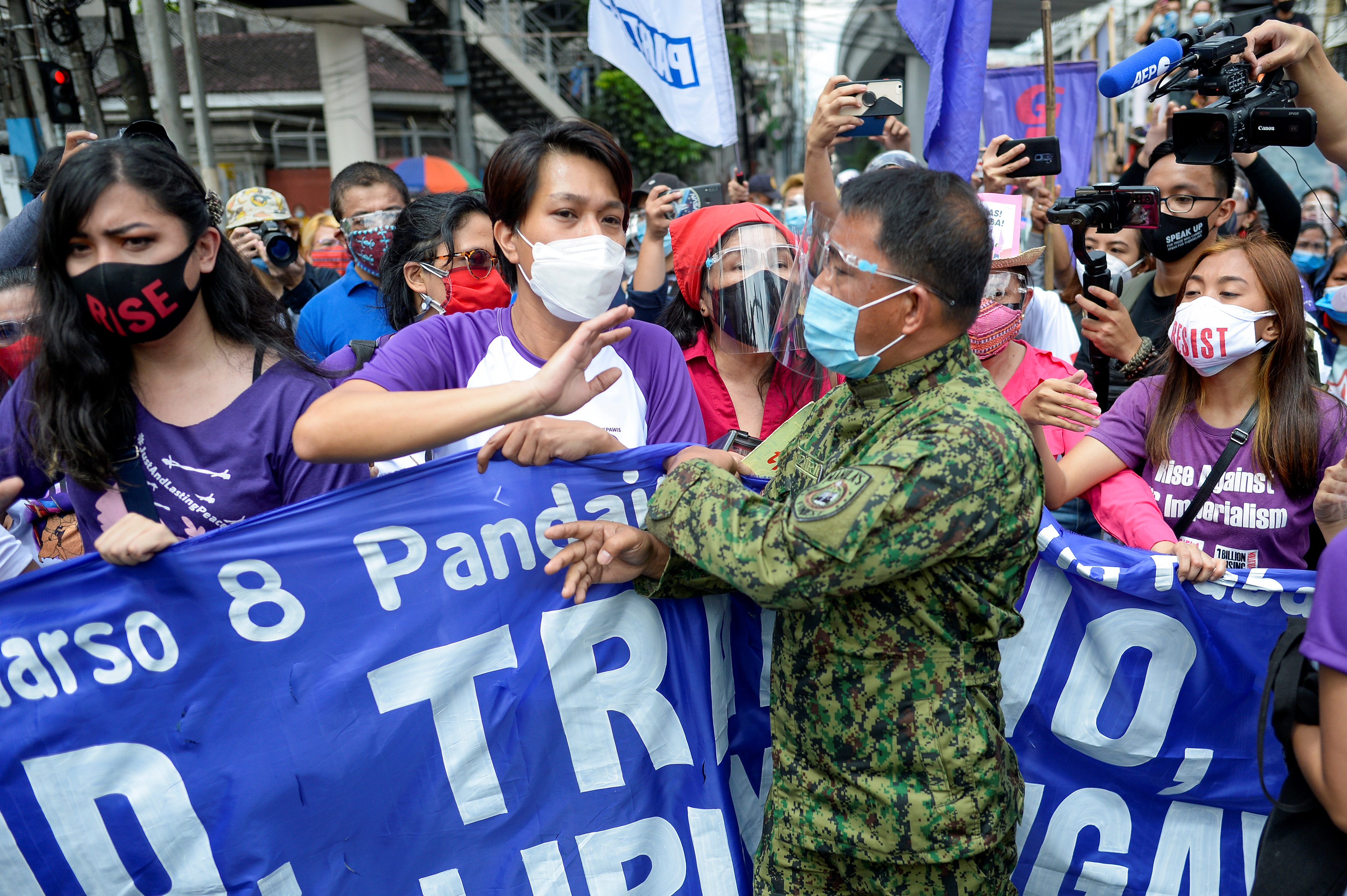 Thousands march to demand gender equality, better working conditions and an end to violence against women.