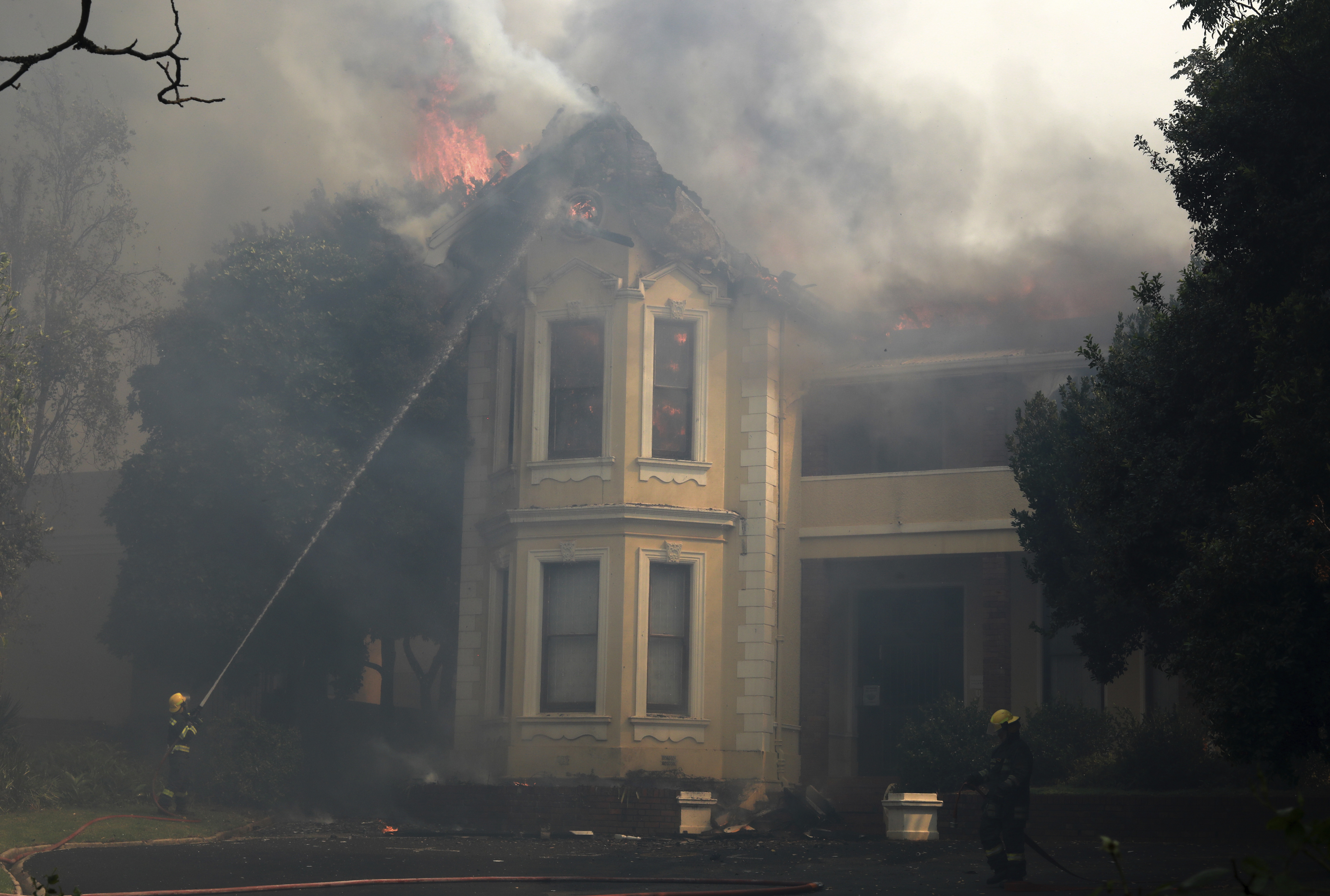 More than 100 firefighters and emergency personnel were deployed to the university campus and to Table Mountain National Park. Four helicopters were being used to drop water on threatened areas, officials said.