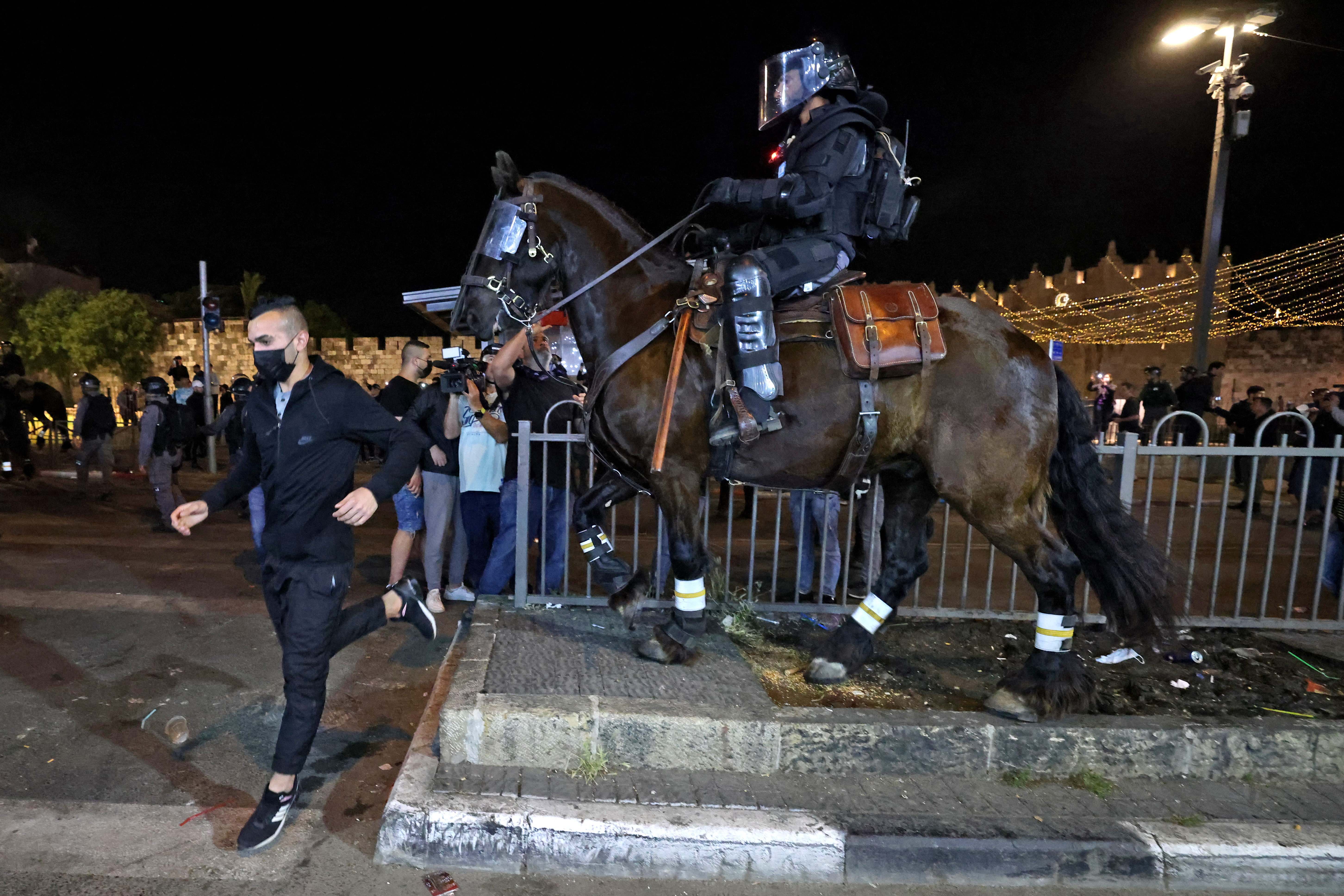 There have been nightly disturbances since the start of the Muslim holy month of Ramadan on April 13, amid Palestinian anger over police blocking off access to the promenade around the walls of the Old City and a ban on gatherings.