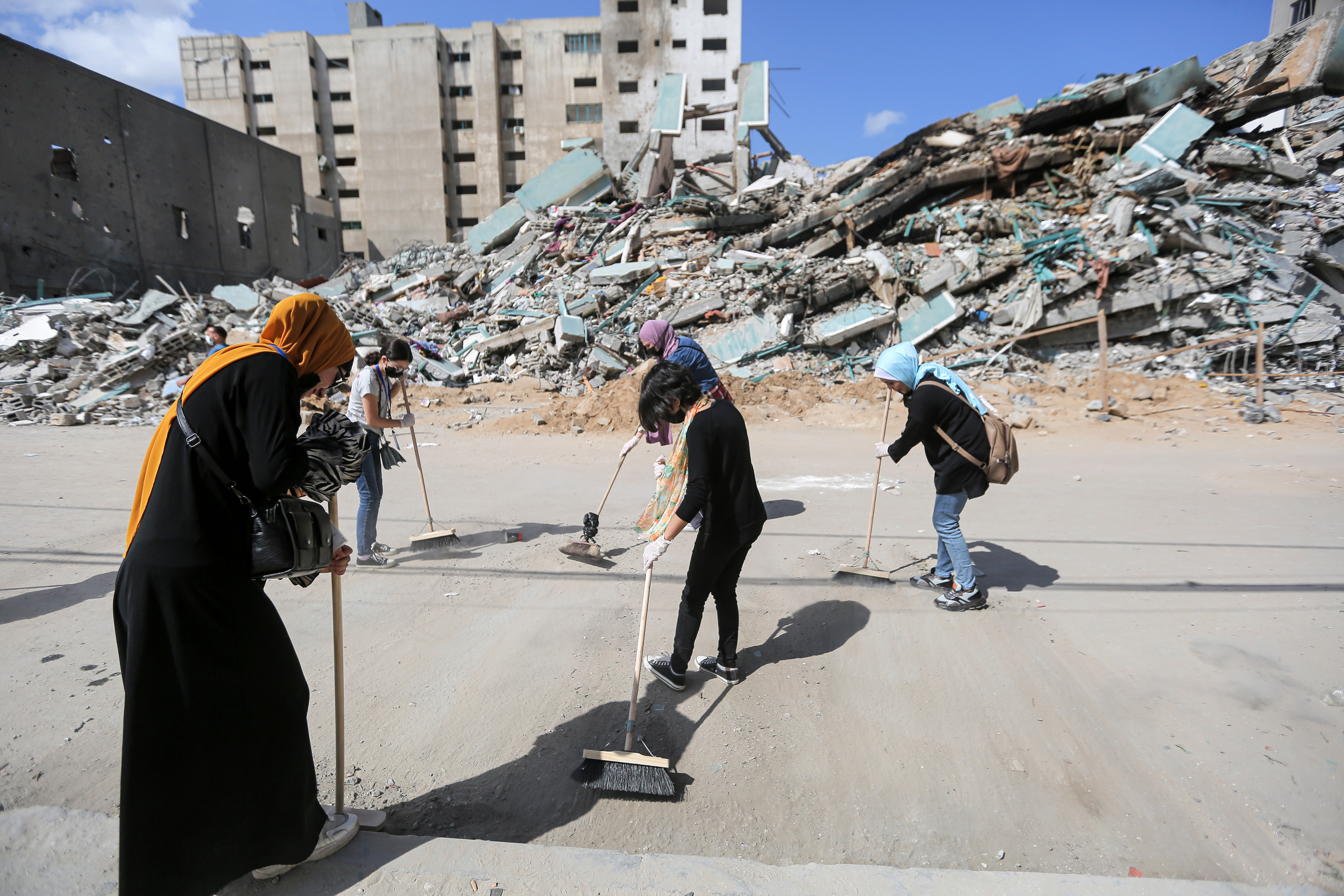 Gaza City – Thousands of Palestinians took to the streets in a campaign to clean up the destruction wreaked by Israel’s bombardment in its 11-day offensive.