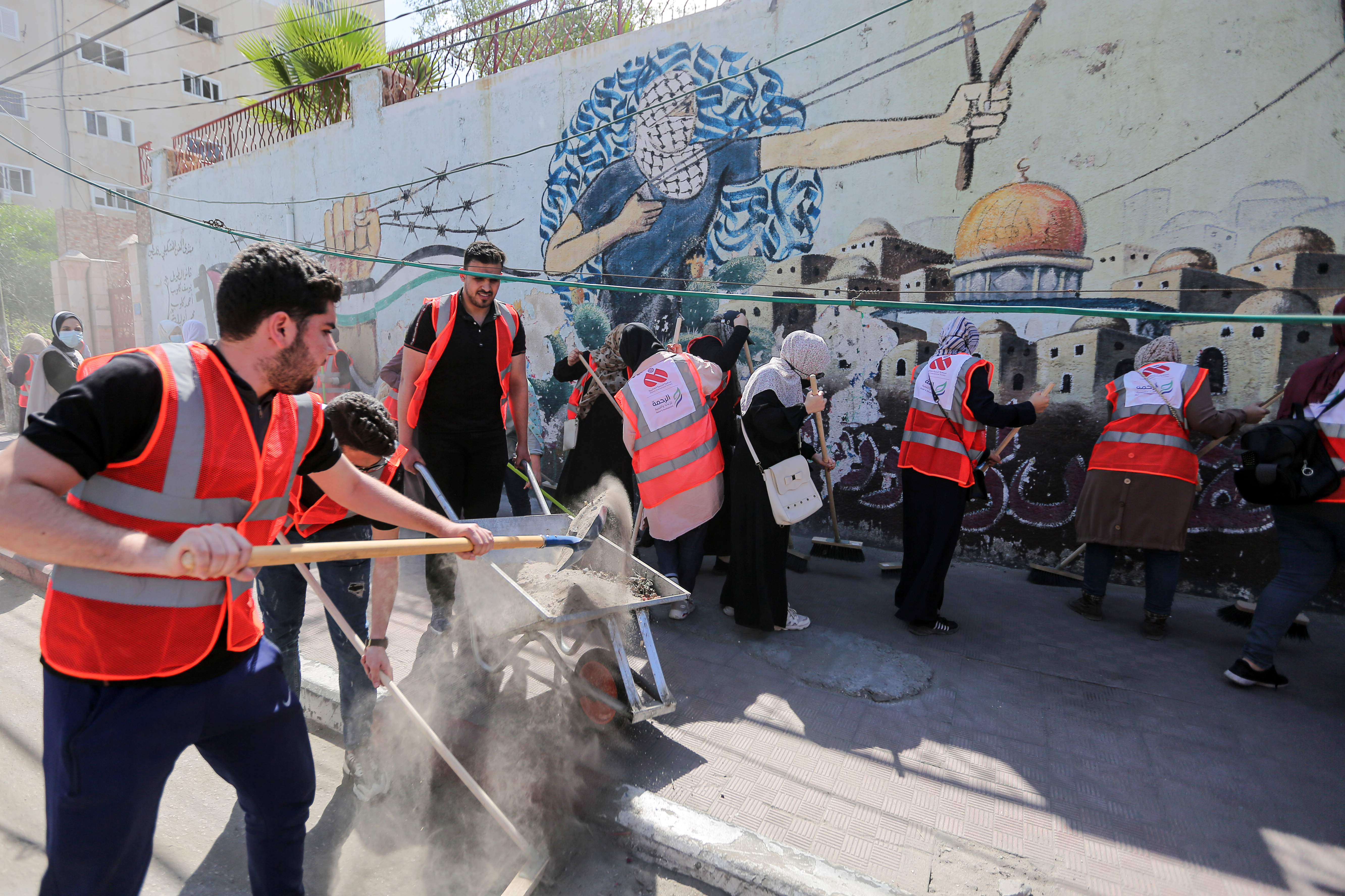 Volunteers clear rubble in a campaign to ‘bring back life to streets that have witnessed so much destruction’.