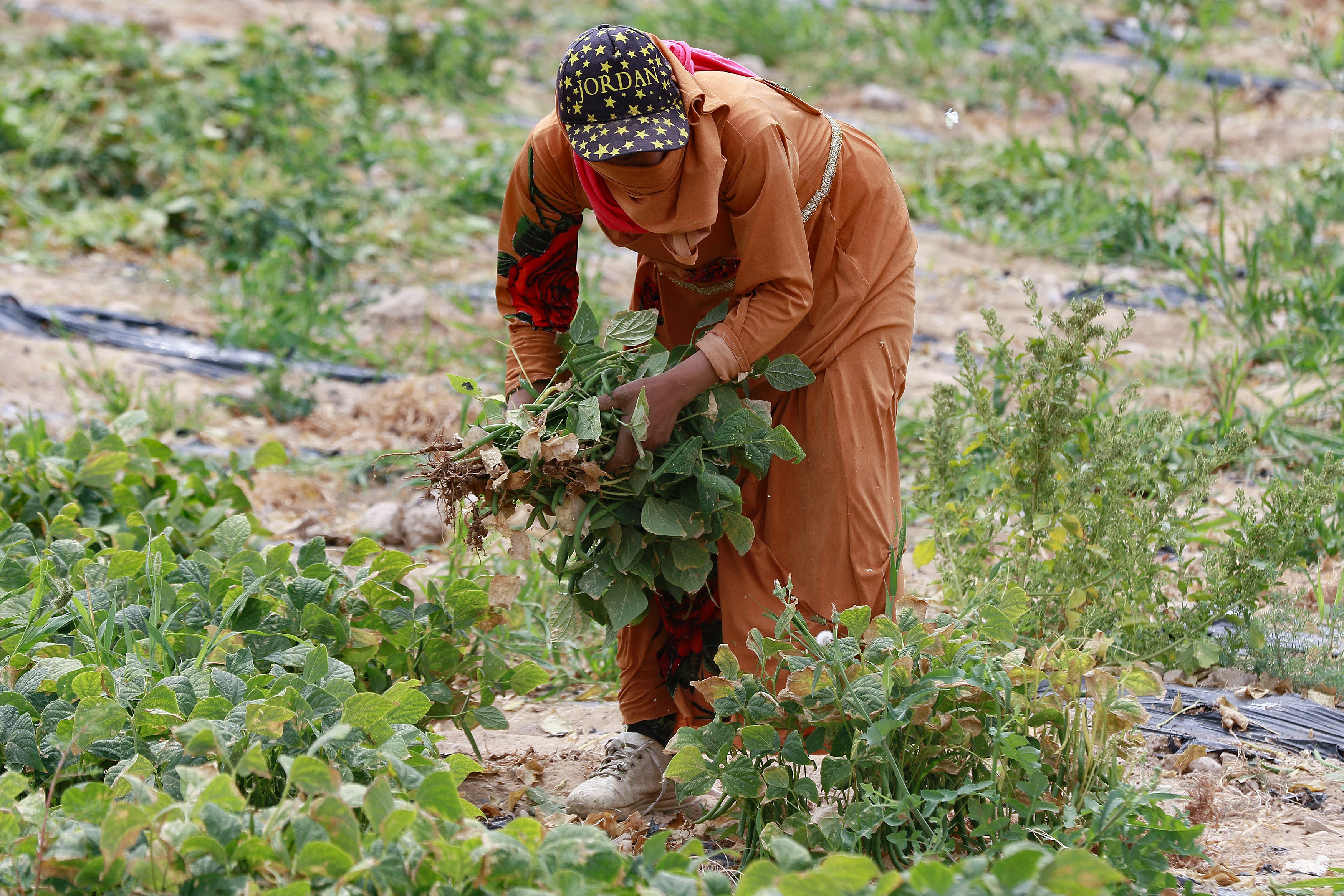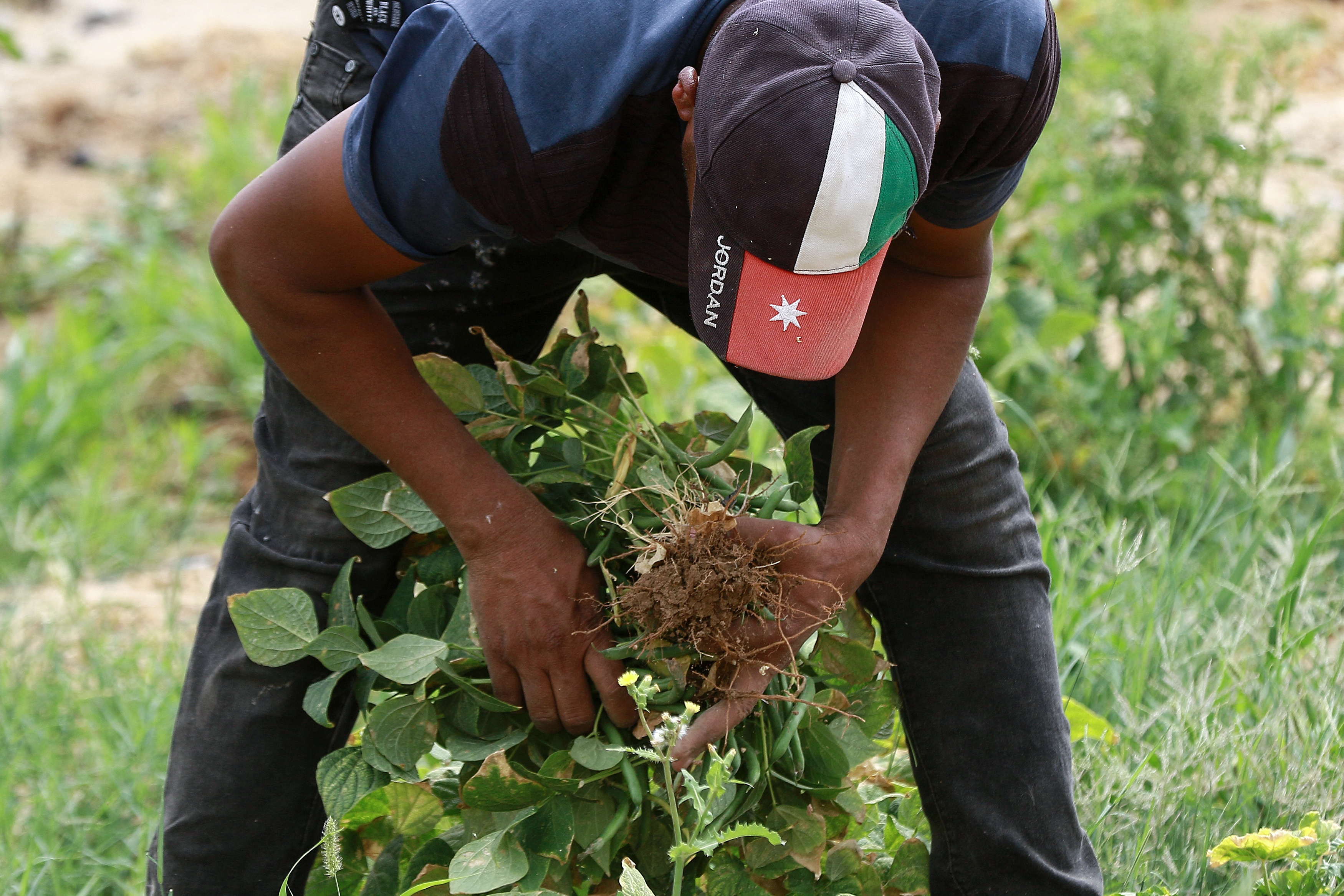 On a nearby nine-hectare (22-acre) farm, 43-year-old Ibrahim Dgheimat sits in his pickup, overwhelmed by the heat. He watches as several women pick beans.