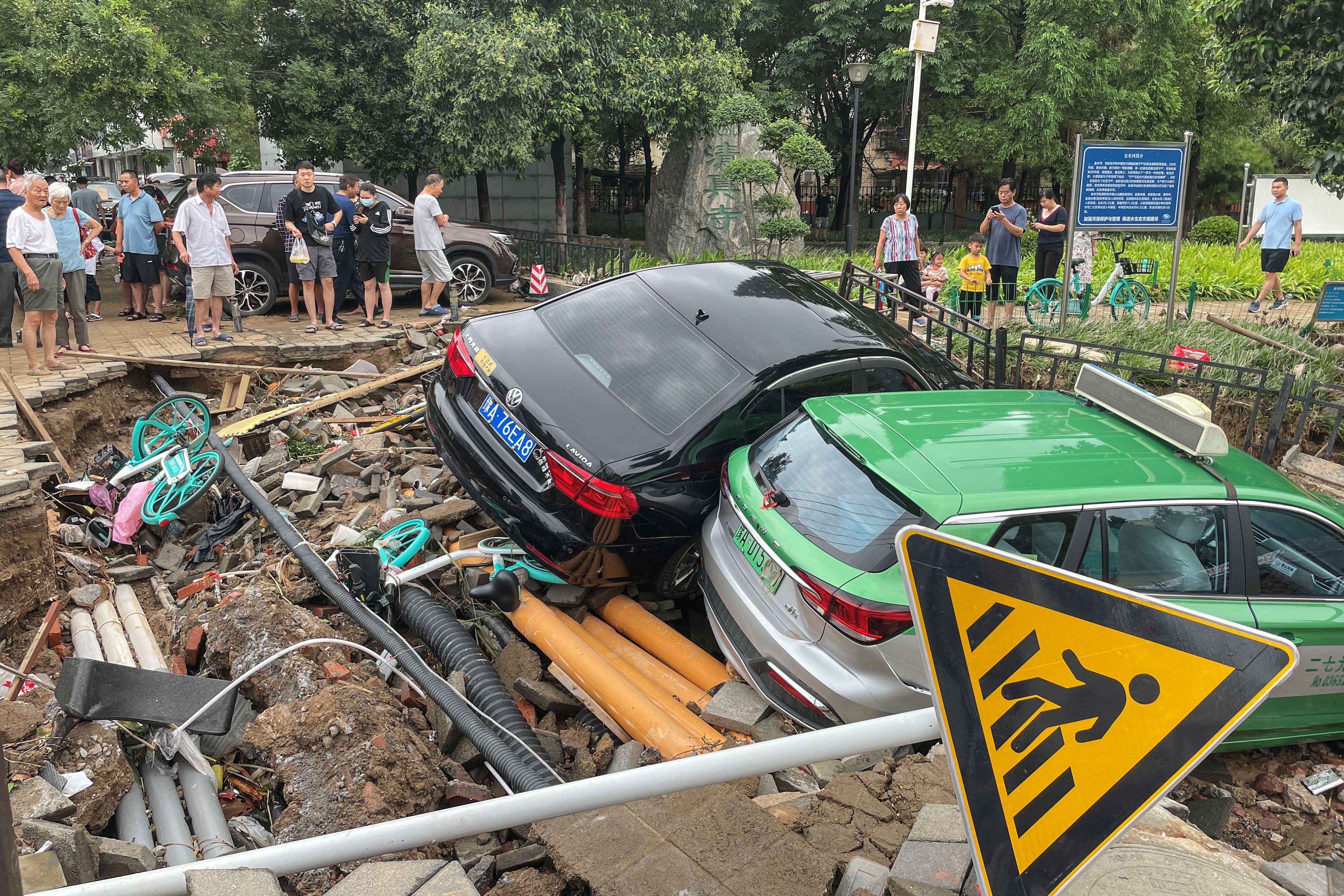 Others showed dramatic rescues of pedestrians in Zhengzhou from torrents gushing through the streets.