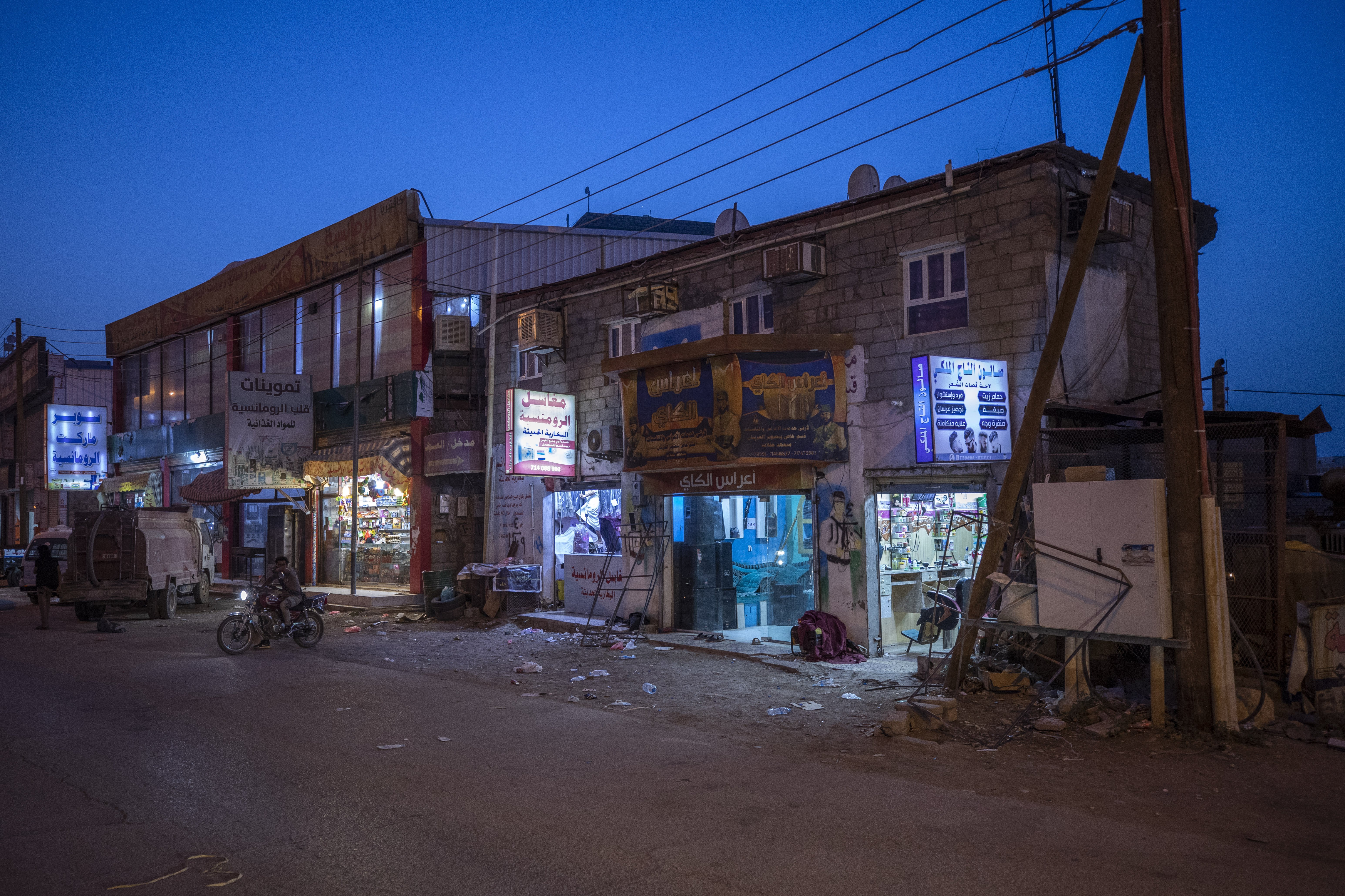 The city’s streets are bustling during the day with taxis and 4×4 vehicles belonging to security forces. At night, men frequent restaurants and cafés or gather in homes, chewing leaves of qat for a stimulant effect. There is little heed paid to the fighting just outside their city.