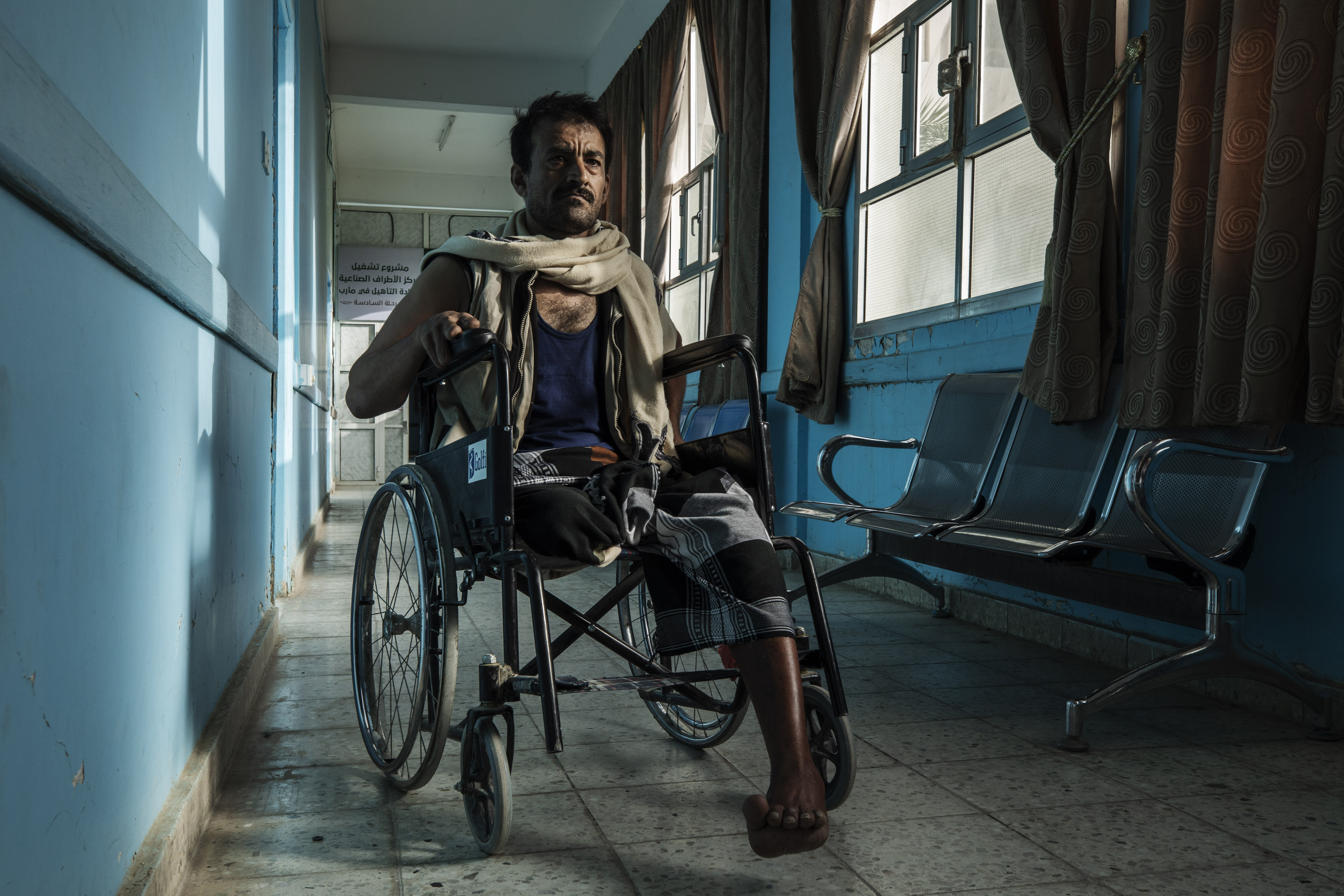 At an intensive care unit, there were 10 patients. In one of the beds, Ali Saad, 22, lay partially paralysed. He was shot by a Houthi sniper on the front line on June 18.