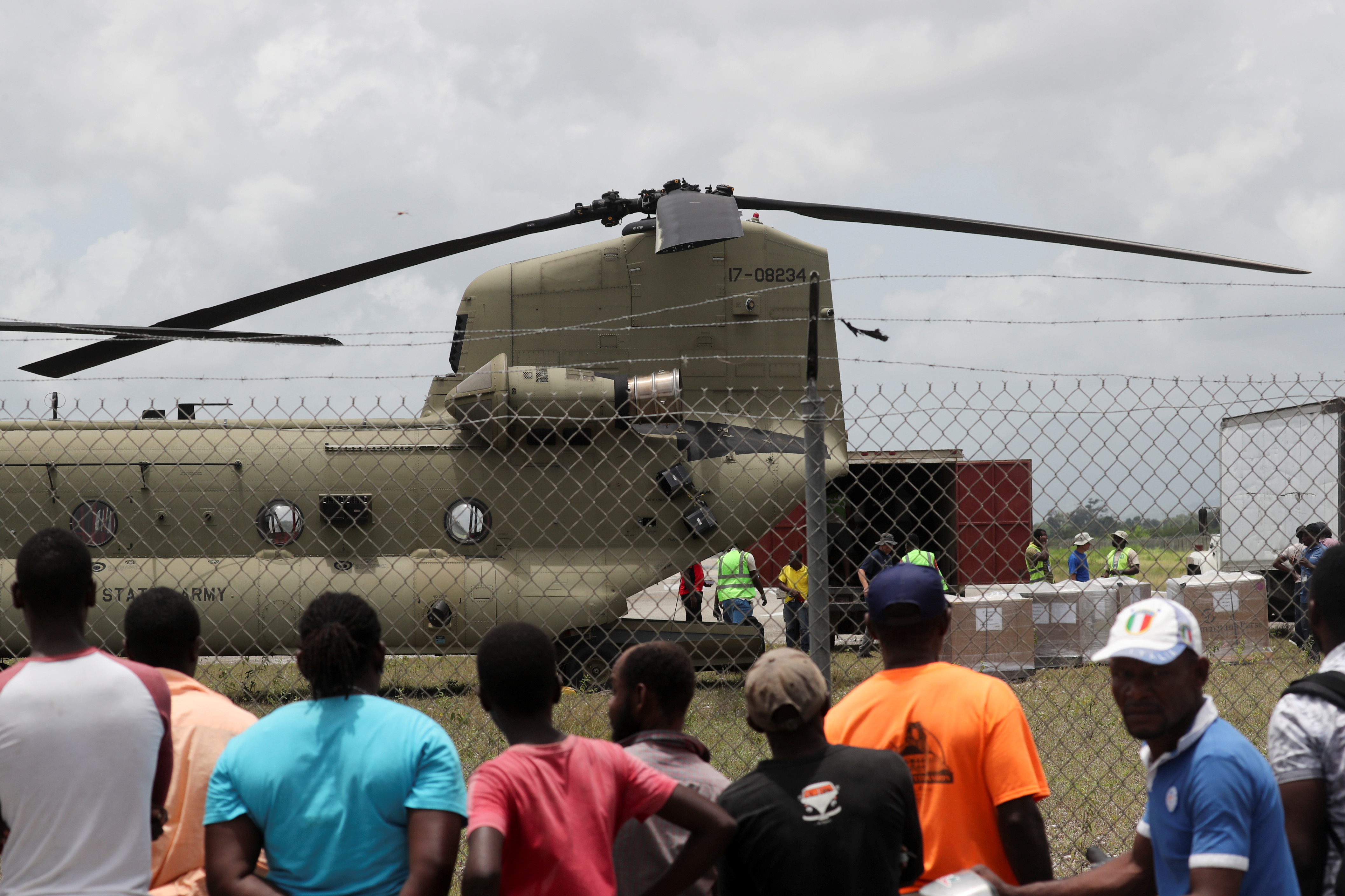 At the small airport in Les Cayes, throngs of people gathered outside the fence on Wednesday when an aid flight arrived and crews began loading boxes into waiting trucks.