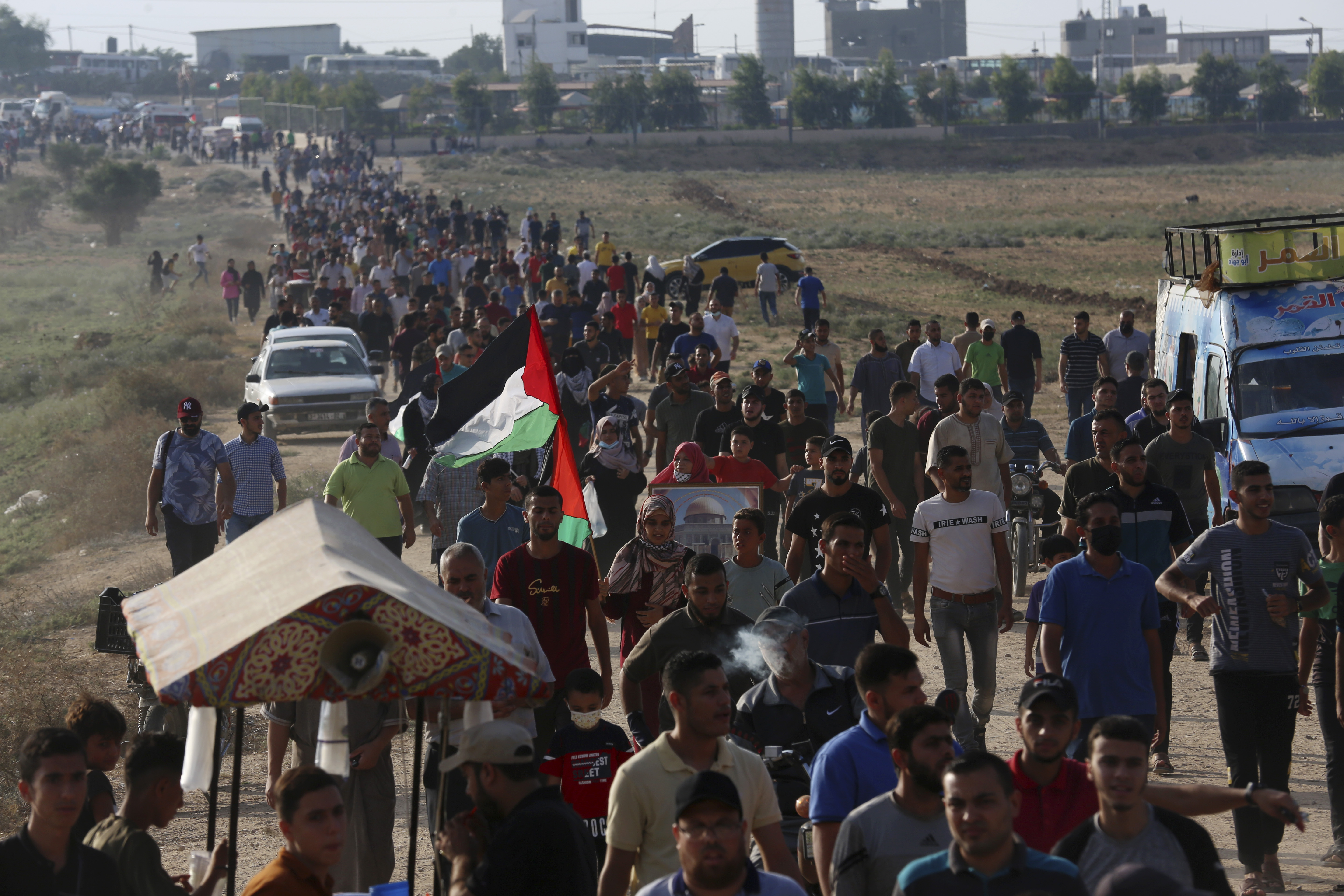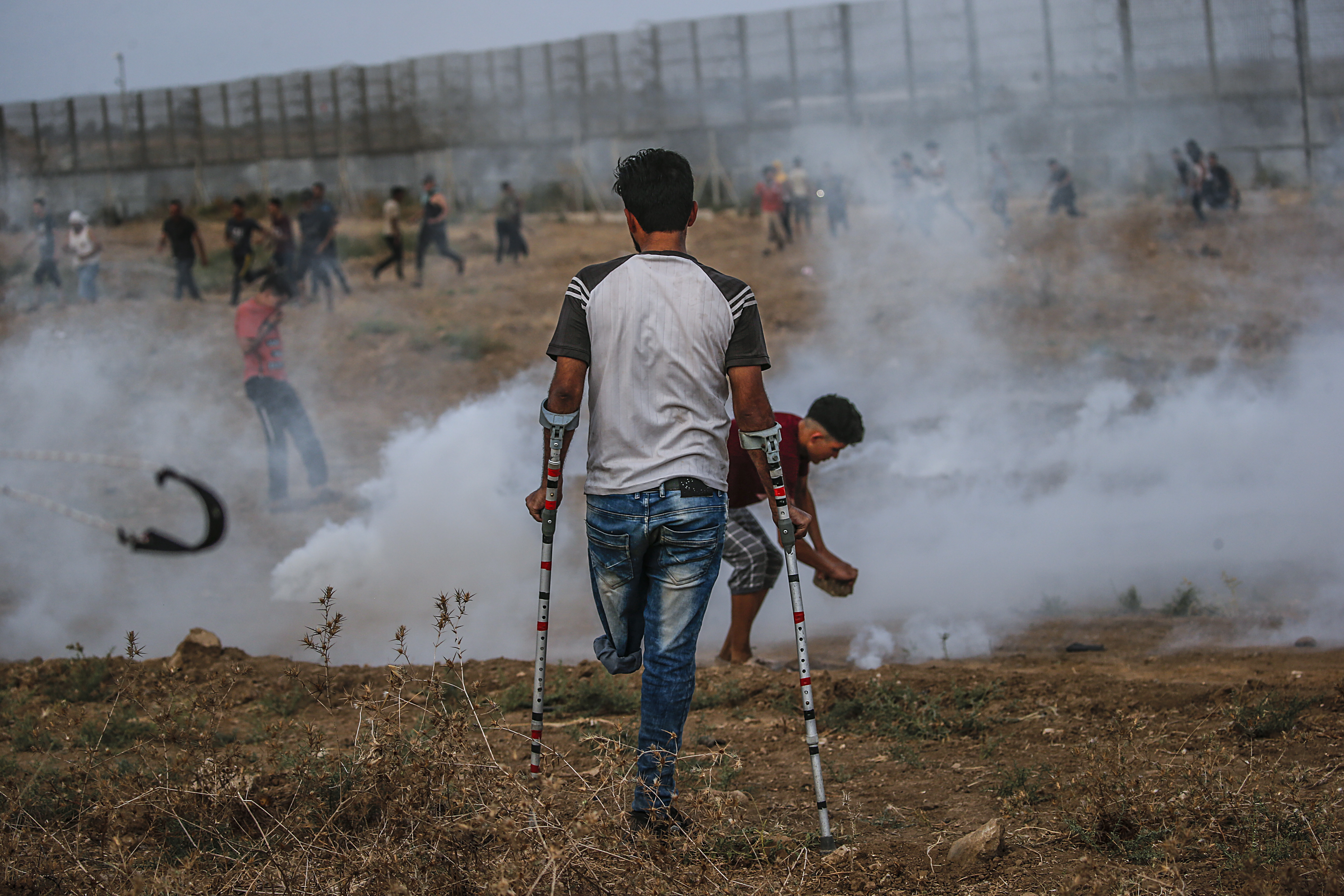 The Israeli military said hundreds of demonstrators approached one area of the fence in northern Gaza and attempted to climb over. It said troops fired tear gas and live rounds at the protesters.