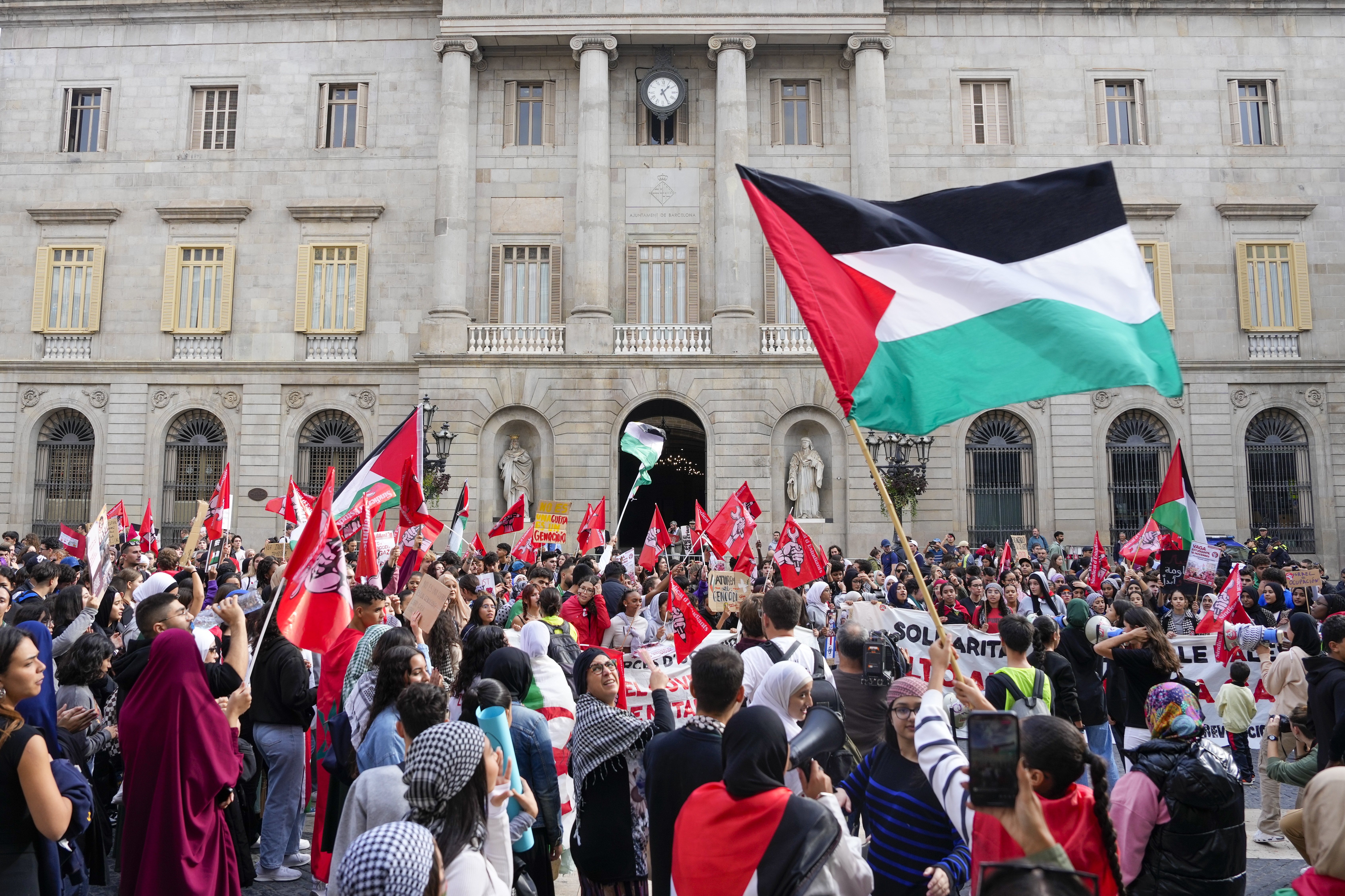 Protesters show solidarity with Palestine and demand an end to the war.