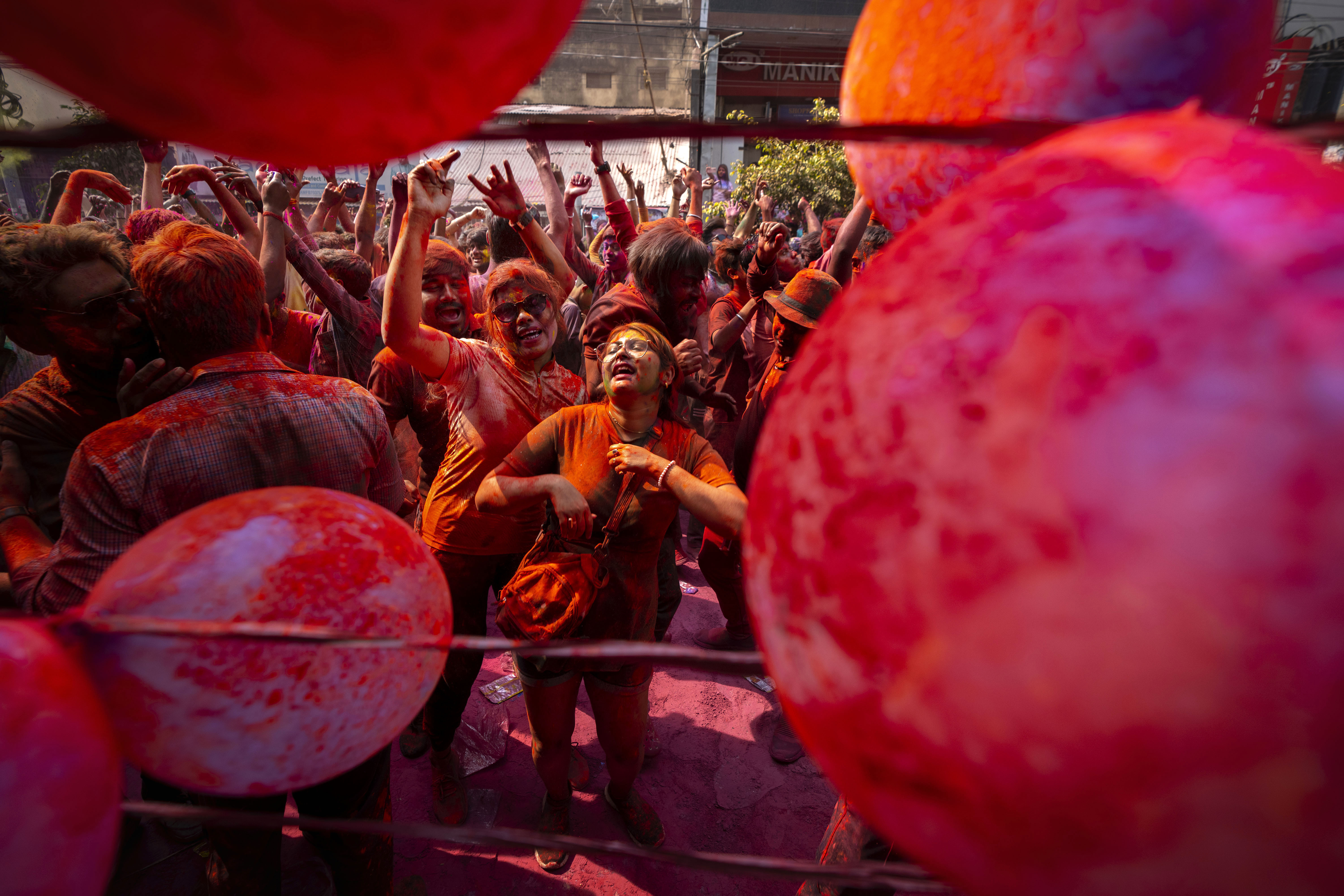 Free from wearing masks and other COVID-19 restrictions after two years, they drenched each other with coloured water on Wednesday.