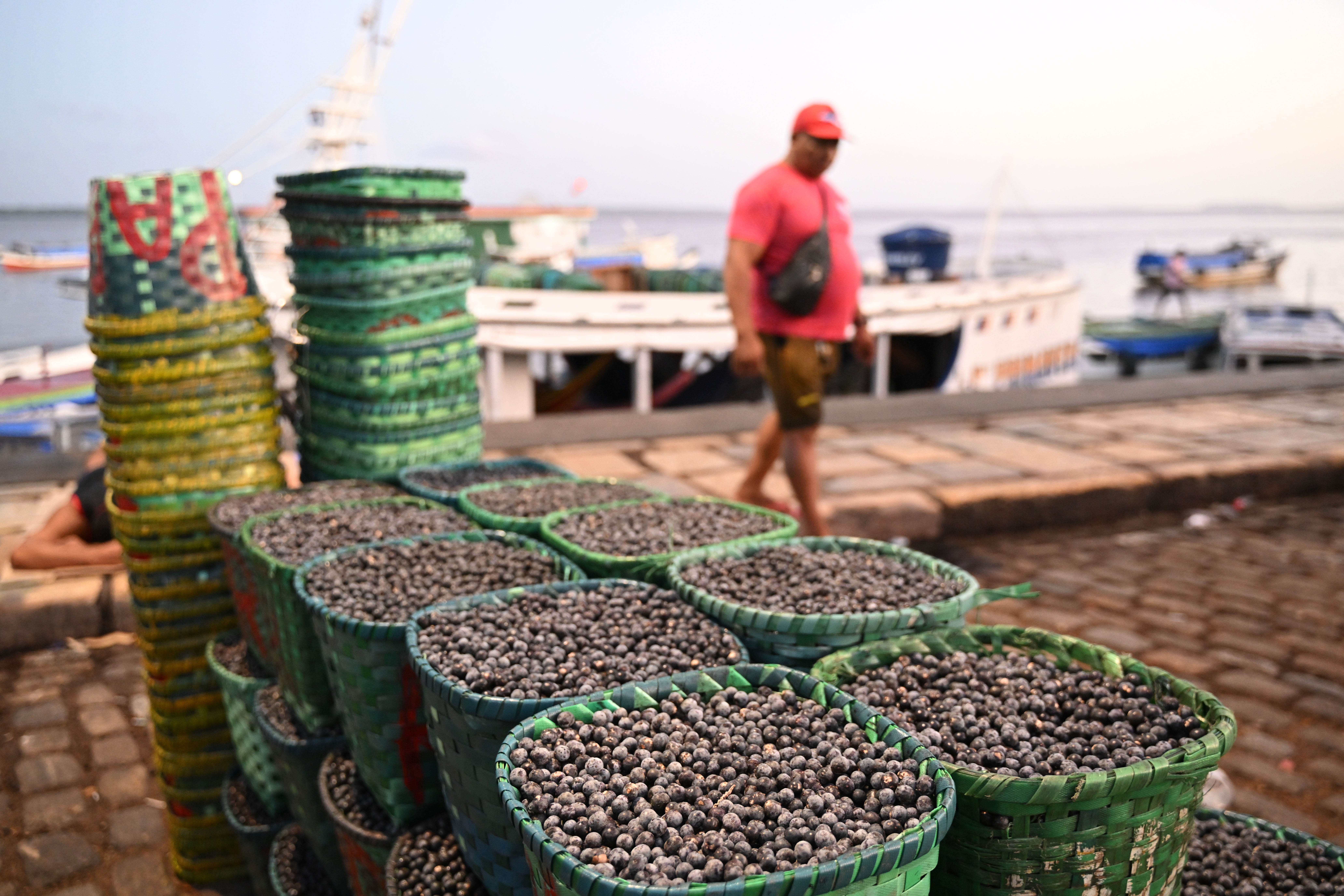 The berries are brought by boat to Belem, the state capital, where sweating workers carry huge loads of them to market to be sold as quickly as possible before the fragile fruit goes bad.