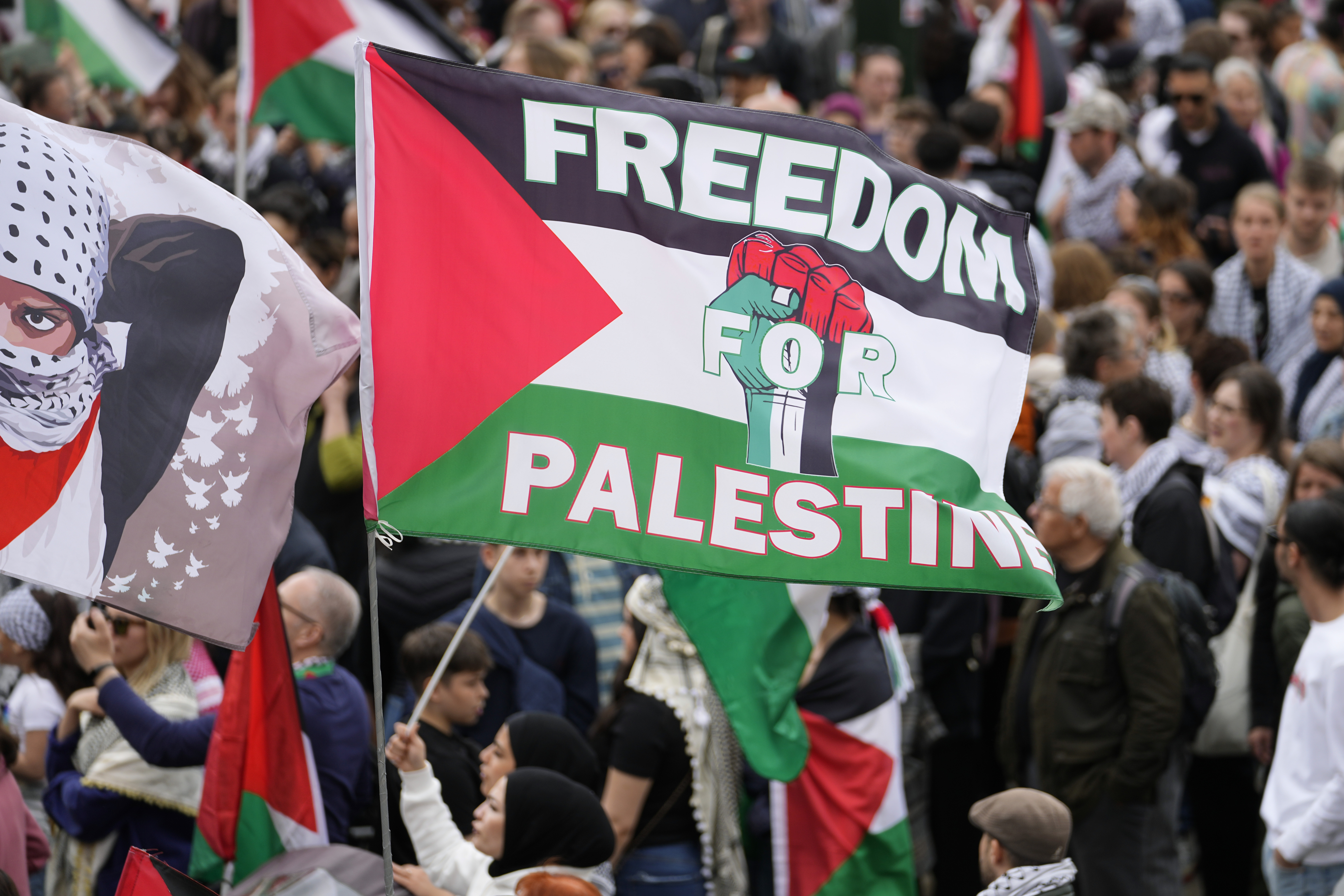 Protesters waving Palestinian flags packed the historic Stortorget square near Malmo’s 16th-century town hall before a planned march on Thursday through the city for a rally in a park several kilometres from the Eurovision venue.