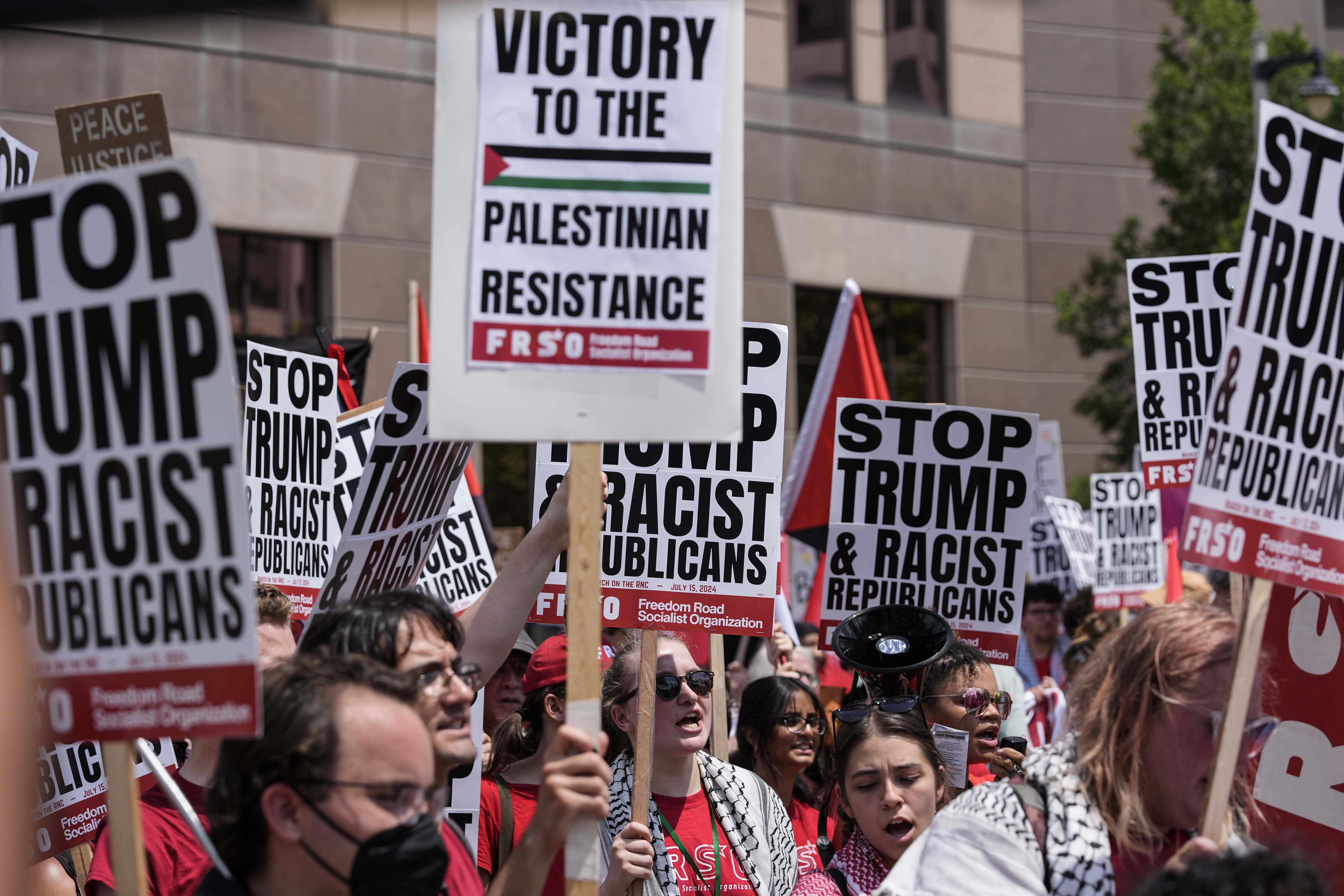 Photos: Gaza, abortion and migrant rights protests outside RNC in US