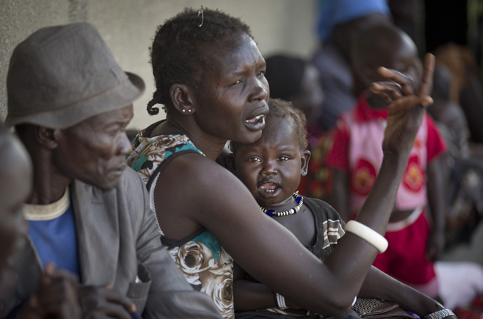 “Life is too hard for us here, as we just depend on these foods,” says Nyayiel Gatluok, pulling down her Mickey Mouse nightshirt to nurse the youngest of her six children.