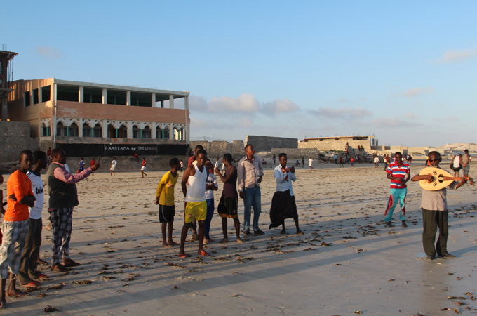 Jiim, as everyone refers to him, is a well-known Somali musician and actor and the crowd of mainly young men has gathered to hear him sing.