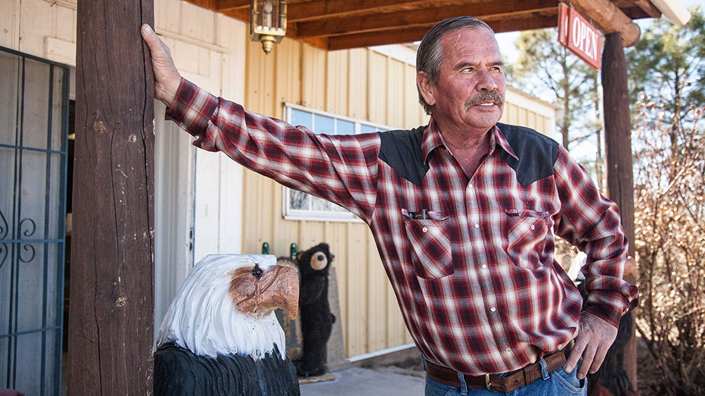 New Mexico, US – Outside Tony’s Rock Shop in the sleepy town of Magdalena, in New Mexico, Ben Valentino Otero stands amid a menagerie of animal statues, two wooden eagles, a merry-go-round horse, a metal sphinx and a variety of obscure rocks.