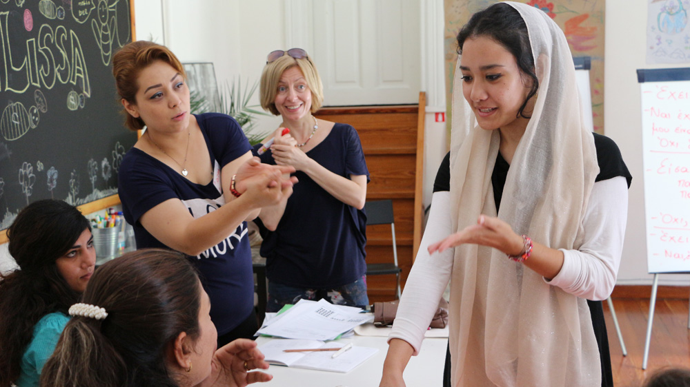 ![Fatima Ahmadi practices a greeting in Greek during an immersion language course at Melissa, while teacher Vicky Tanzou looks on [John Psaropoulos/Al Jazeera]](/wp-content/uploads/2016/07/8e612b6ae8e549cca249a815df98bbf4_18.jpeg?resize=770%2C513&quality=80)