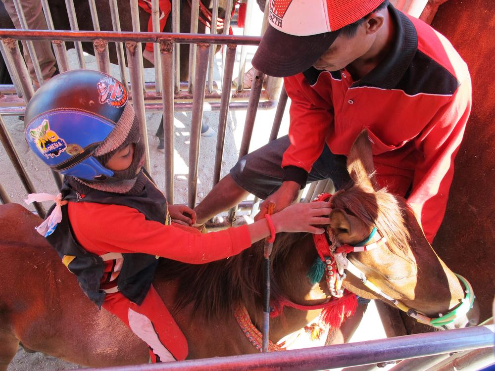 They are the children of poor families who work as horse caretakers. Being a child jockey often runs in the family, and children frequently learn to ride a horse as soon as they can walk. Falling off horses is common – and many child jockeys have the scars to show for it.