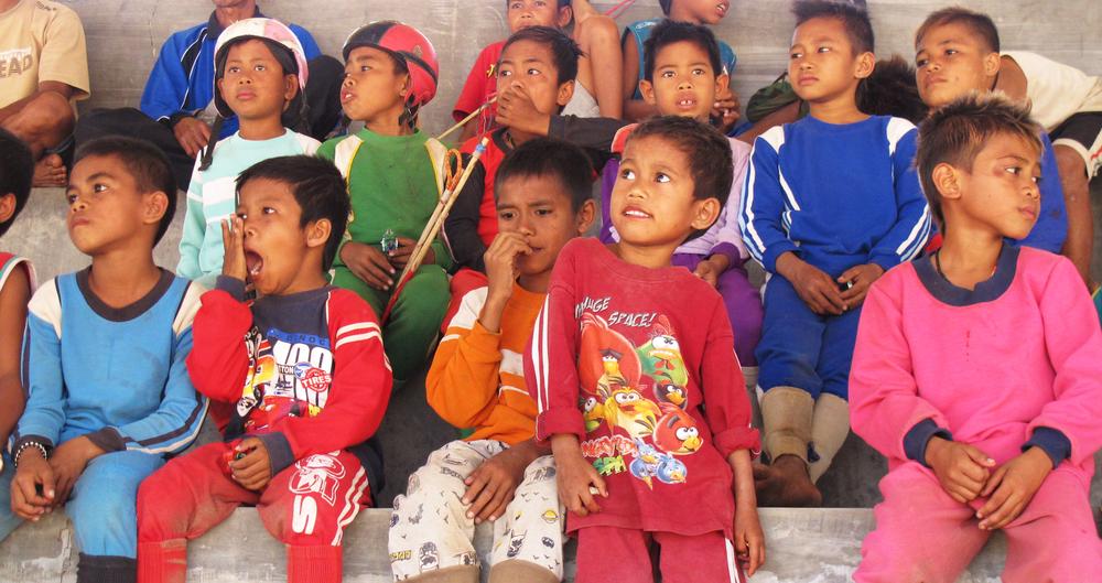 The races are held in three different districts on the island of Sumbawa. Families travel to whichever district the race is held in, putting up tents, sleeping without mattresses, and cooking outdoors. The children do not attend school during this period.