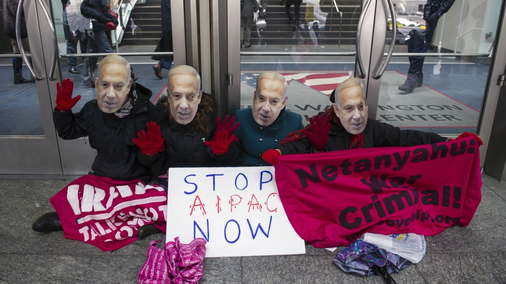 ![Pro-Palestine demonstrators wearing Israeli Prime Minister Benjamin Netanyahu masks, led by Code Pink, protest in front of doors of the Washington Convention Center [AP]](/wp-content/uploads/2015/03/e44473554507412789a79222fd2e8de8_18.jpeg?resize=770%2C513&quality=80)