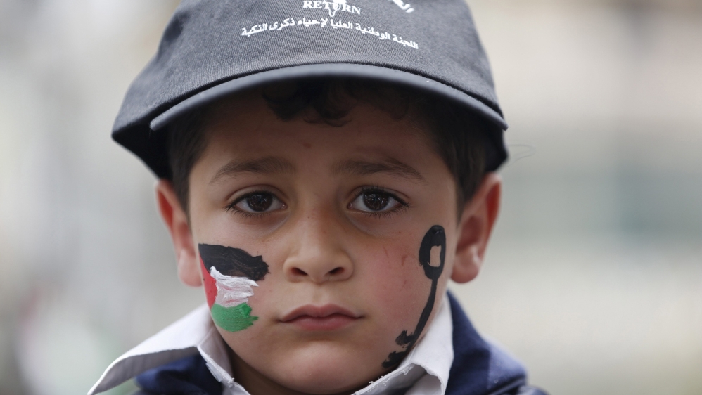 ![A Palestinian boy has his face painted with a Palestinian flag and a key as he takes part in a rally ahead of Nakba day, in the West Bank city of Ramallah [REUTERS]](/wp-content/uploads/2015/05/0676c84859d24c298020160a883982ee_18.jpeg?resize=770%2C513&quality=80)