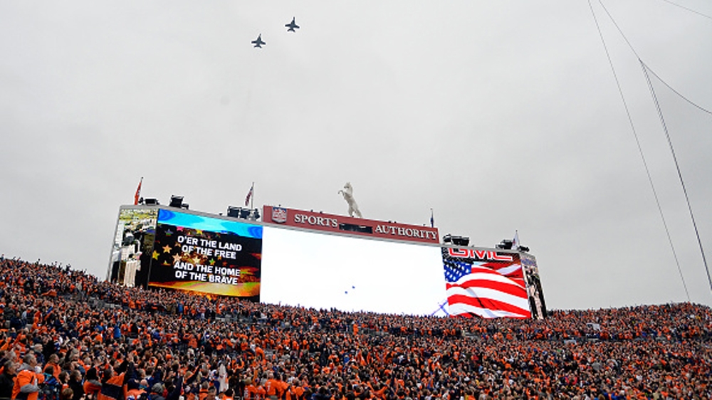 Fighter jets flying atop football stadiums, US military advertisements filling up airtime between baseball innings, military recruiters eyeing young men and women walking out of basketball arenas, the US Department of Defense paying NFL franchises millions of dollars to honour one of its soldiers on any given Sunday.