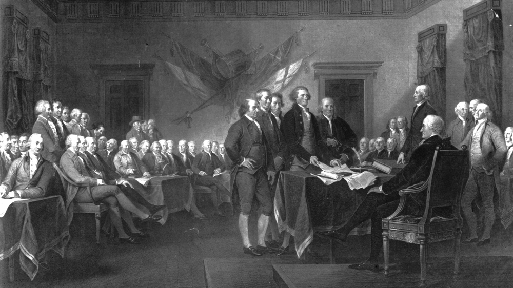 ![Benjamin Franklin, left, with the drafting committee of the United States Declaration of Independence including future presidents Thomas Jefferson and John Adams, and other founding fathers, Roger Sherman and Robert R Livingston [Getty Images]](/wp-content/uploads/2016/12/c240142f40b8403ab7f7b07be77a1873_6.jpeg?quality=80)