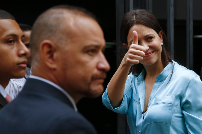 “Today they have charged me with the crime of conspiracy,” Machado said as she left attorney general’s office in the capital, Caracas, flanked by her supporters and the leader of the main opposition coalition, Jesus Torrealba.