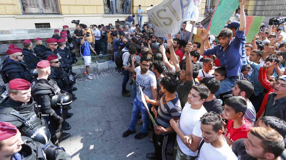 Al Jazeera’s Andrew Simmons, reporting from outside the Keleti station, described the atmosphere there as “very tense right now” and that the refugees were stuck in limbo.
