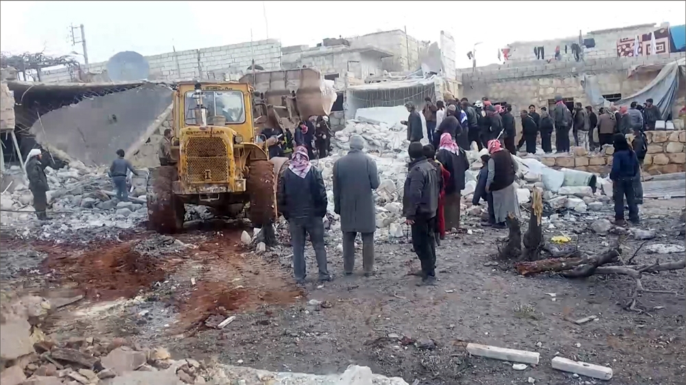 The attack is the latest deadly incident blamed on the Russian military, with nearly 100 people killed in a series of air raids on the town of Maarat al-Numan in Idlib province on Saturday.