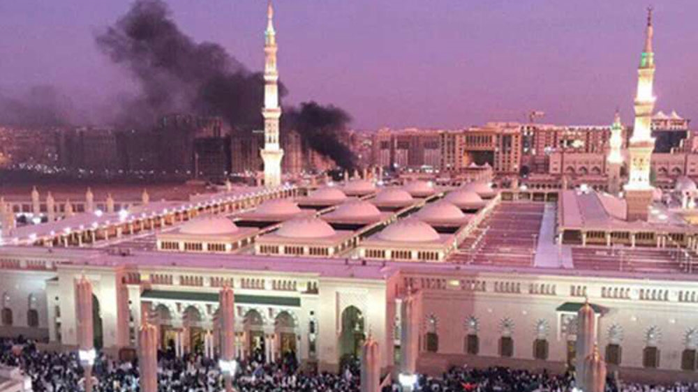 Photos of Medina posted on social media showed smoke billowing from a fire outside the mosque where Prophet Muhammad is buried.