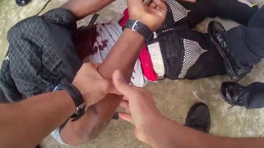 Officers are then seen handcuffing O’Neal, who is face down on the ground with blood on the back of his white shirt. One police officer is overheard in the video cursing the wounded teenager, and telling him “to put your hands behind your back”.