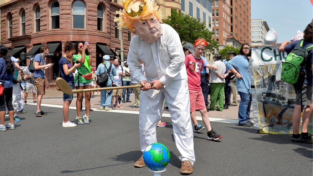 “Trump must not be allowed to shirk his moral responsibility or renege on America’s Paris commitments,” Greenpeace said in a statement following the protest.