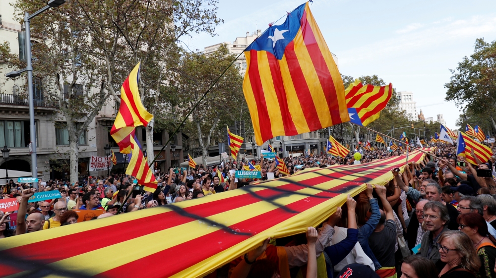![People wave placards and Catalan flags during a protest organised by Catalan pro-independence movements Catalan National Assembly (ANC) and Omnium Cultural, following the imprisonment of their two leaders [Rafael Marchante/Reuters]](/wp-content/uploads/2017/10/e6b82c0ab76e47b78b096670a1adf233_18.jpeg?quality=80)