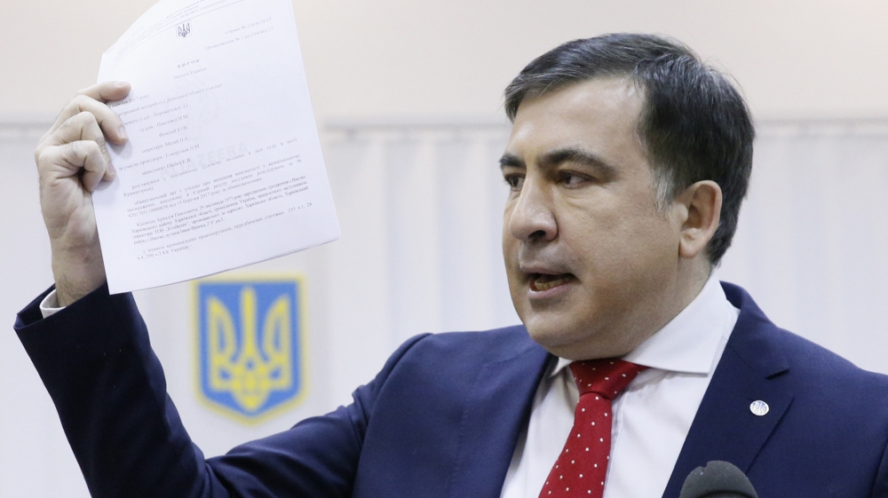 Ukrainian prosecutors accuse Saakashvili of having assisted a criminal organisation, a charge he claims is a politically motivated attempt to undermine his campaign to win the Ukrainian presidency, from incumbent Petro Poroshenko.