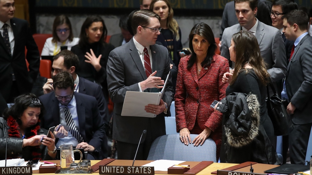 Addressing the Security Council, Nikki Haley, the US ambassador to the UN, said the Washington-drafted resolution “is the bare minimum that the council can do to respond to the attack”.
