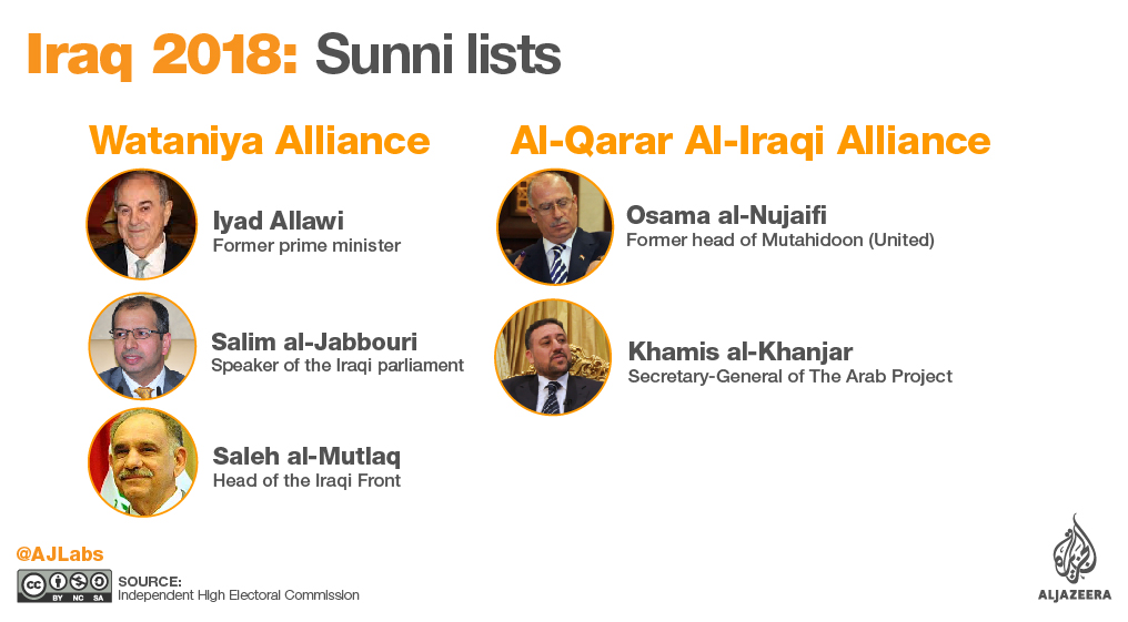 The other is the Wataniya Alliance represented by Salim al-Jabouri, the current speaker of parliament, and Saleh al-Mutlaq, former deputy prime minister and former prime minister Iyad Allawi’s secular coalition.