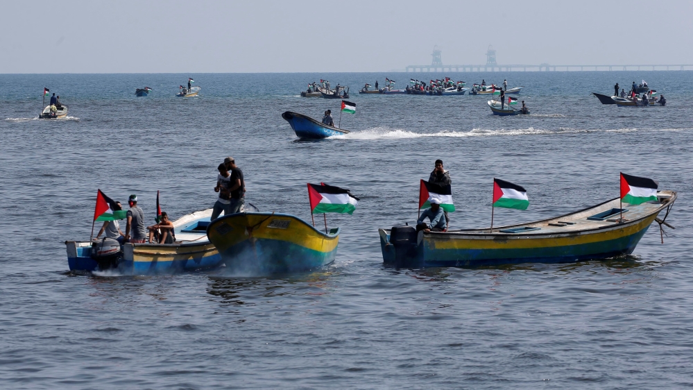 Although hundreds of people boarded more than 30 fishing boats in support of the main vessel, they did not cross the six-nautical-mile permitted boundary, Ramadan al-Hayek, one of the organisers of the voyage, told Al Jazeera
