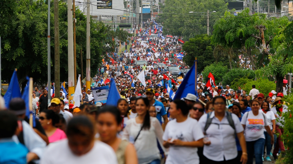 Thousands staged dueling marches for and against the government on Monday. Those opposed to Ortega carried crosses with backpacks hanging from them – symbols of students killed in the unrest. A pro-government student union voiced support for Ortega and referred to protesters as “terrorists”.