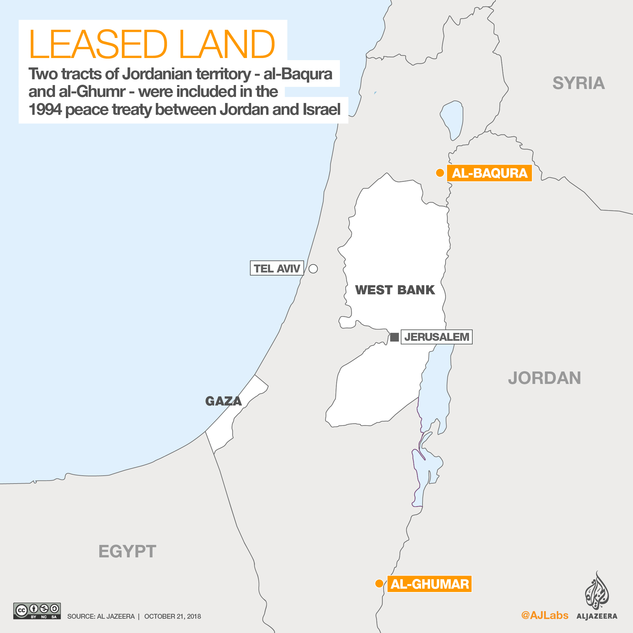 As part of the agreement, Israel leased about 405 hectares of agricultural land in the southern sector of its border with Jordan called al-Ghumar, as well as the small al-Baqura area near the confluence of Jordan and Yarmouk rivers.