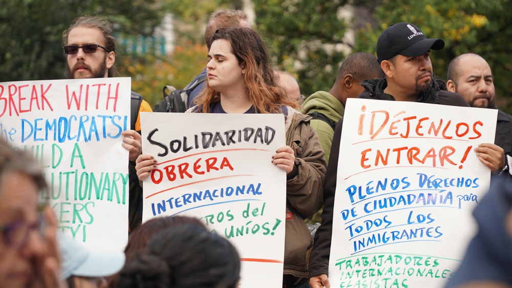 Barbara Mutnick, an organiser with the Jackson Heights Solidarity Network, said Trump was “trying to divide the American people and trying to scapegoat immigrants”.
