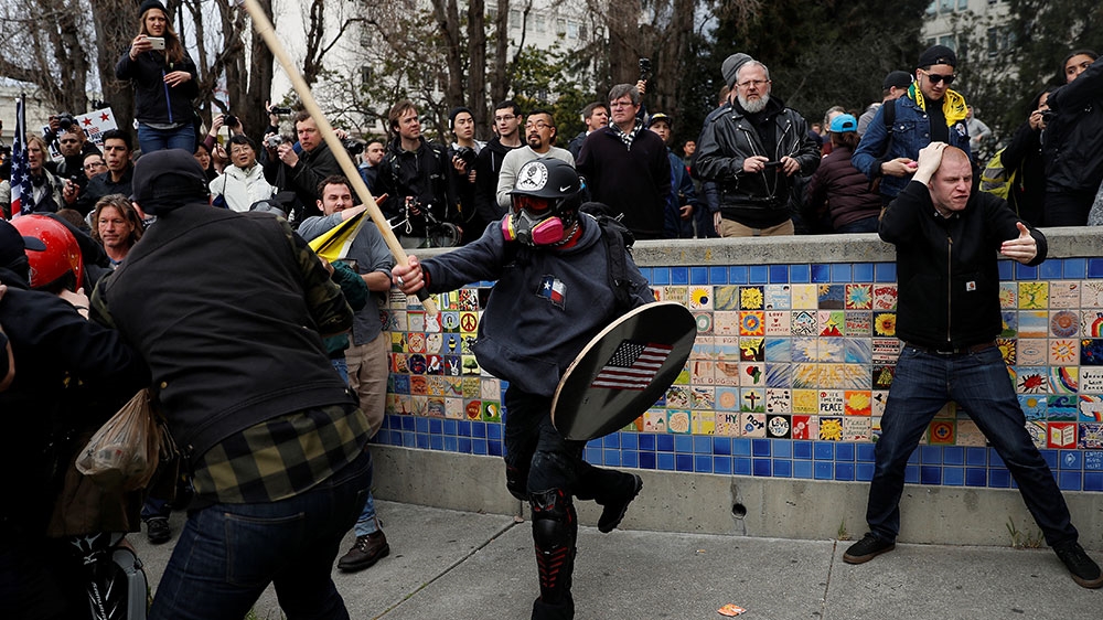 ![Some 300 people, including supporters of Trump and counterdemonstrators, descended on Berkeley on March 4, 2017 [File: Stephen Lam/Reuters]](/wp-content/uploads/2018/06/b34f0b3beafb410ebbe9f125a41b986c_18.jpeg?quality=80)