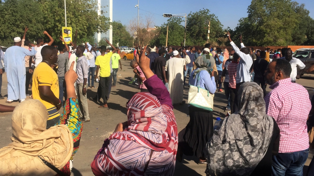 “We reiterate our people’s demand that the head of the regime and his government have to immediately step down,” Omar el-Digeir, a senior member of the group, said in a statement outside the army headquarters.