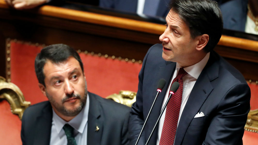 “It is irresponsible to initiate a government crisis … [Salvini] has shown that he is following his own interests and those of his party,” he told a packed senate, one of the two chambers of parliament, with a stony-faced Salvini sitting by his side.