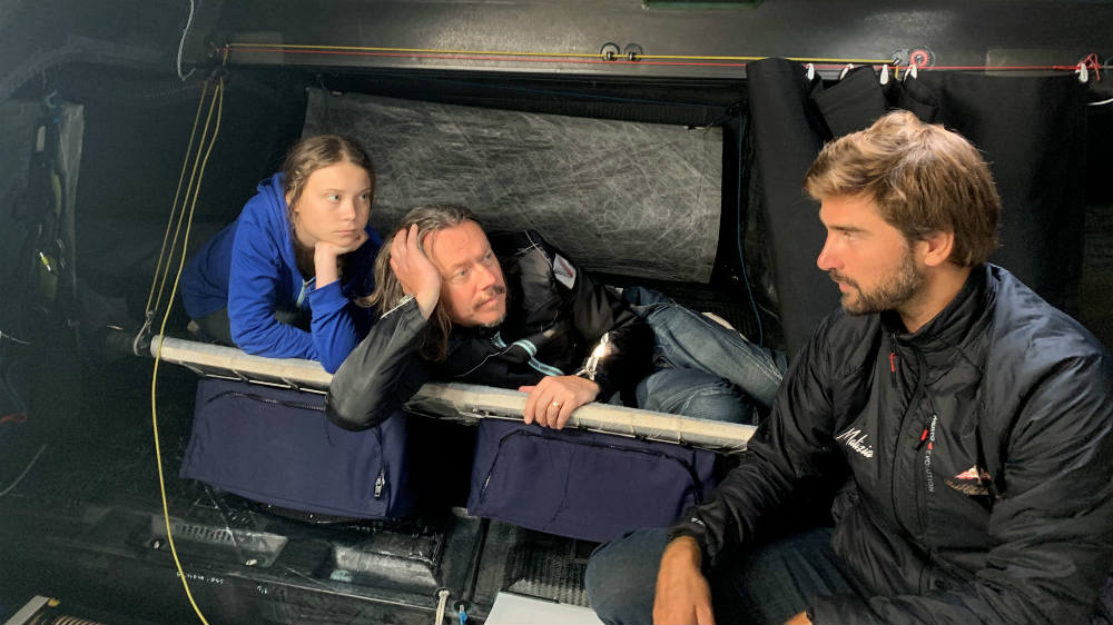 The face of a new generation of eco-activists is taking her message on board a zero-emissions yacht, bound for New York.