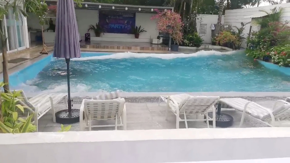Video footage of the earthquake posted by users on Twitter showed electrical wires swaying and erupting in a shower of sparks. Another video showed water sloshing out of a hotel swimming pool.